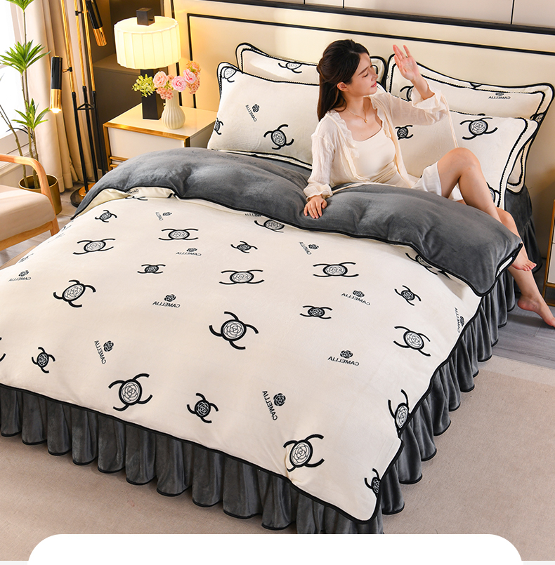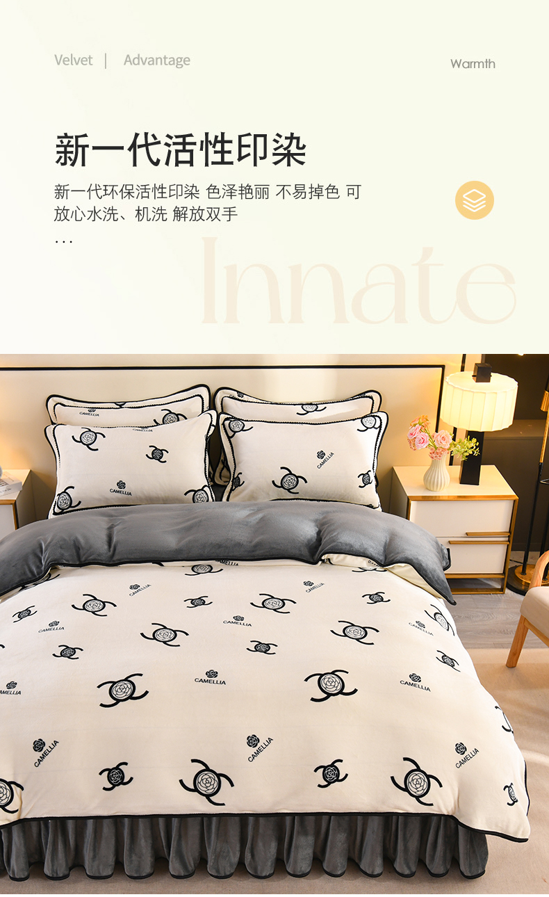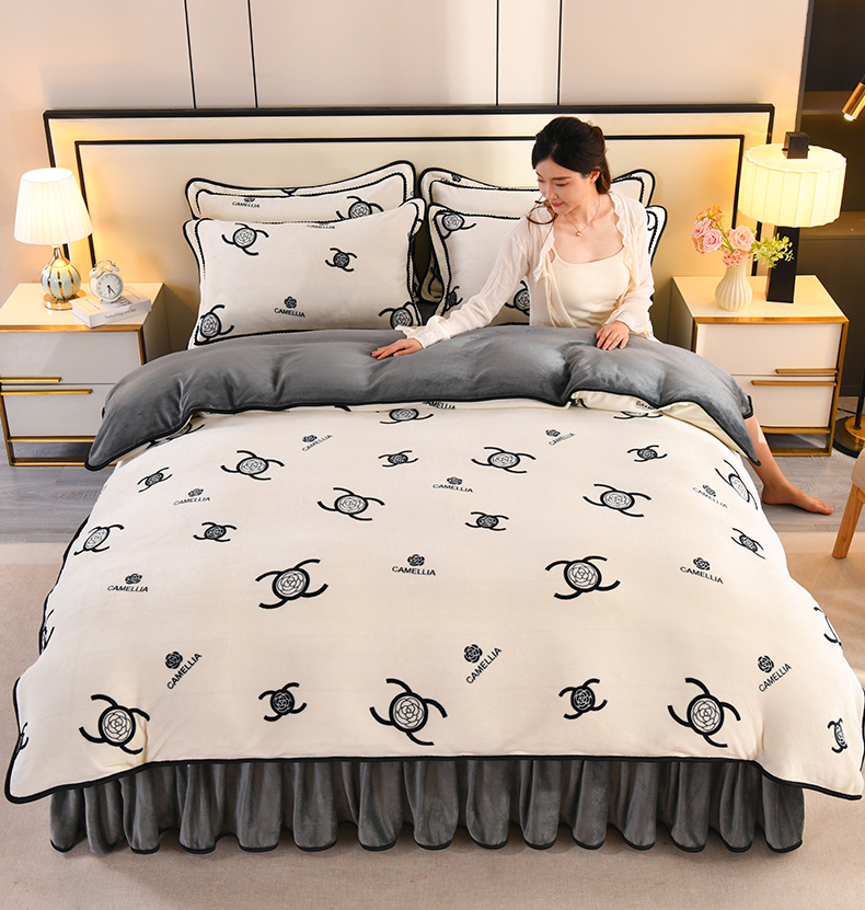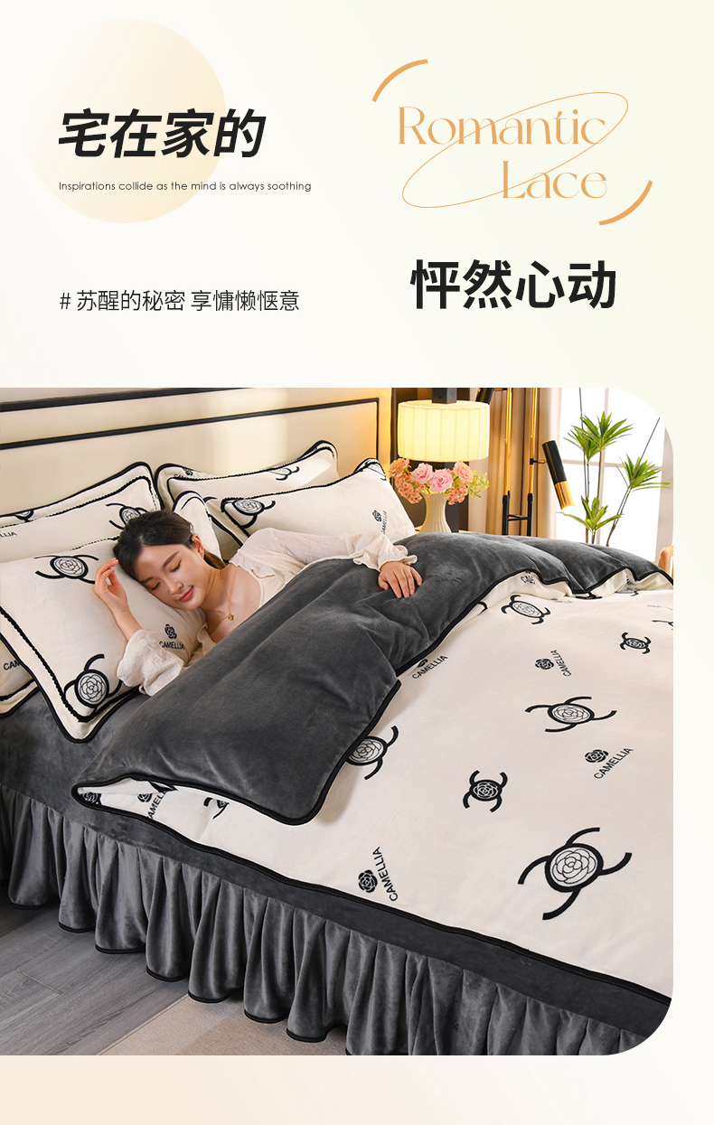 商品名称:2025新款高克重8斤金貂绒牛奶绒四件套 山茶花