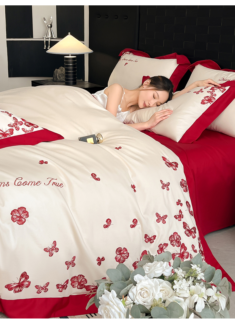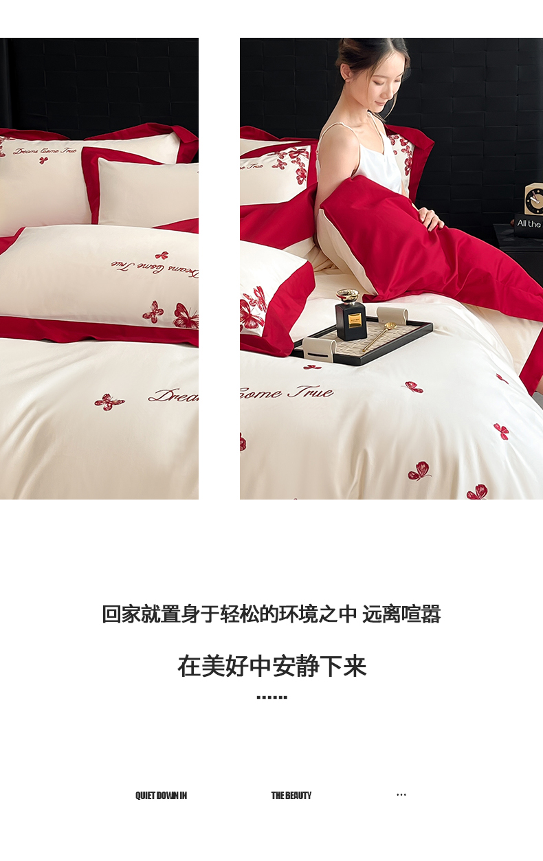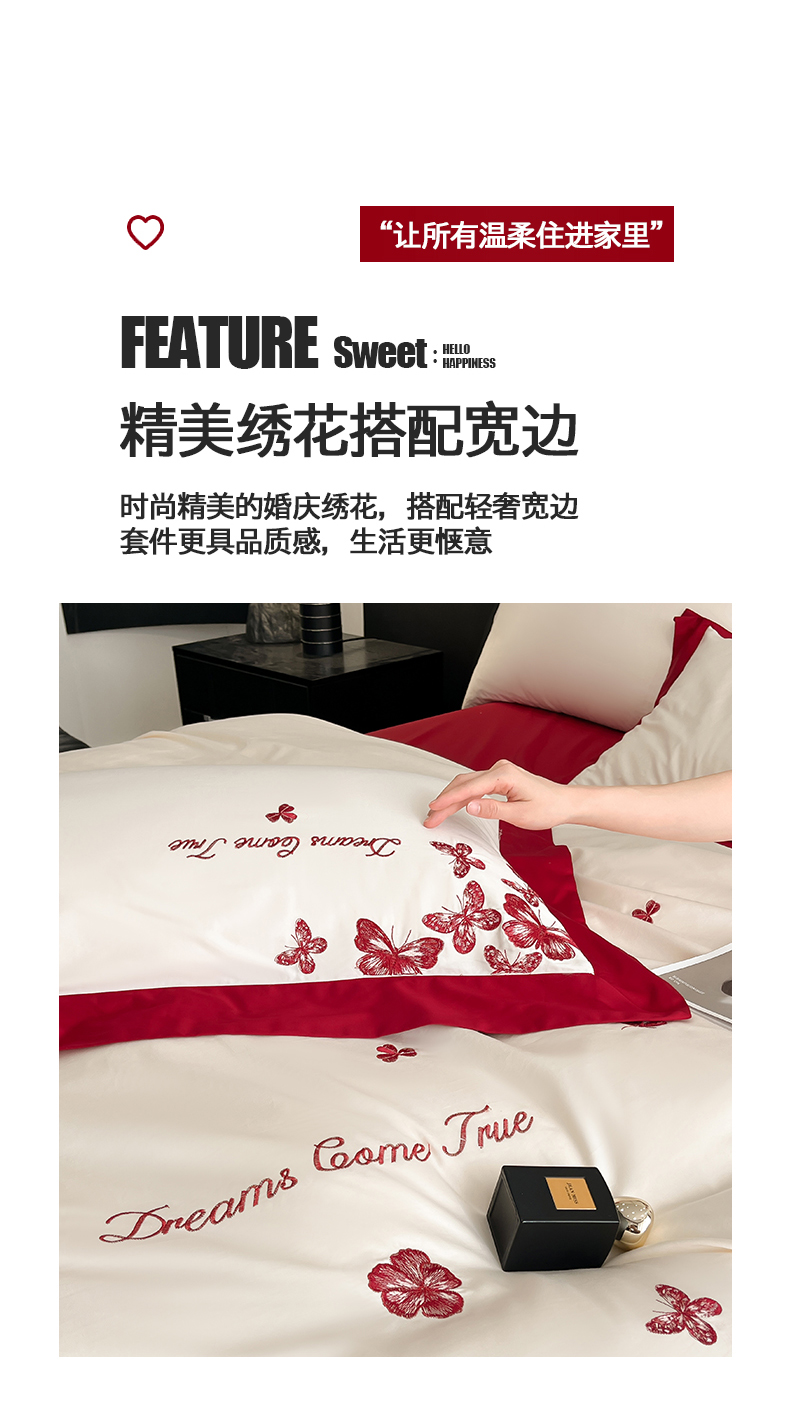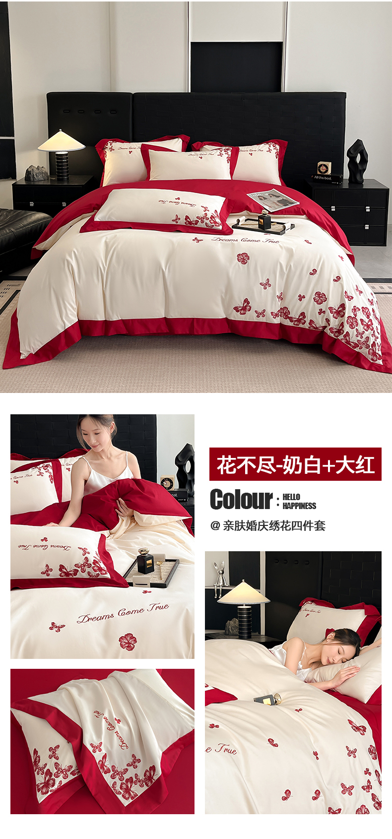 置顶家纺 2025新款亲肤婚庆绣花四件套-花不尽 花不尽-奶白+大红