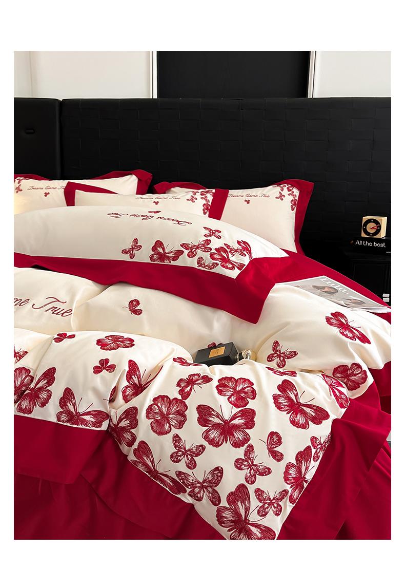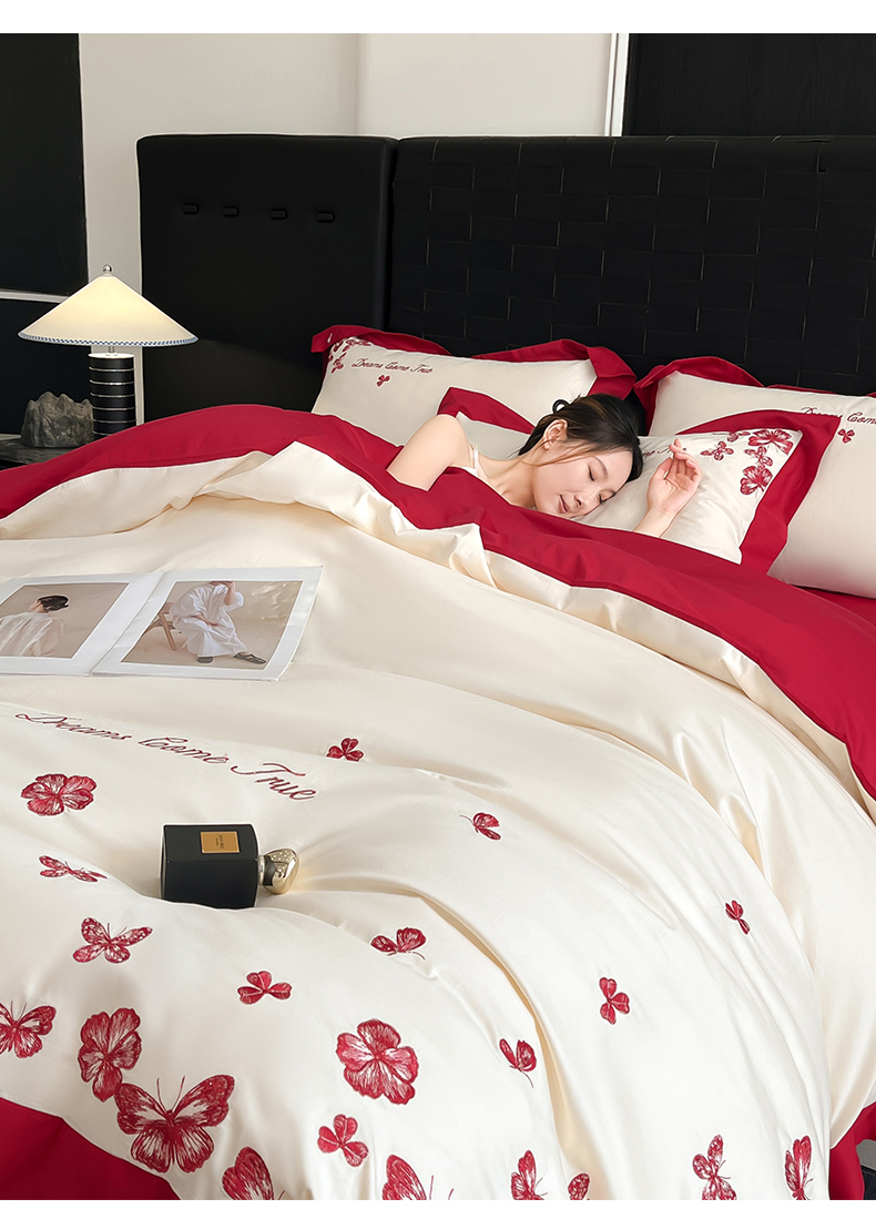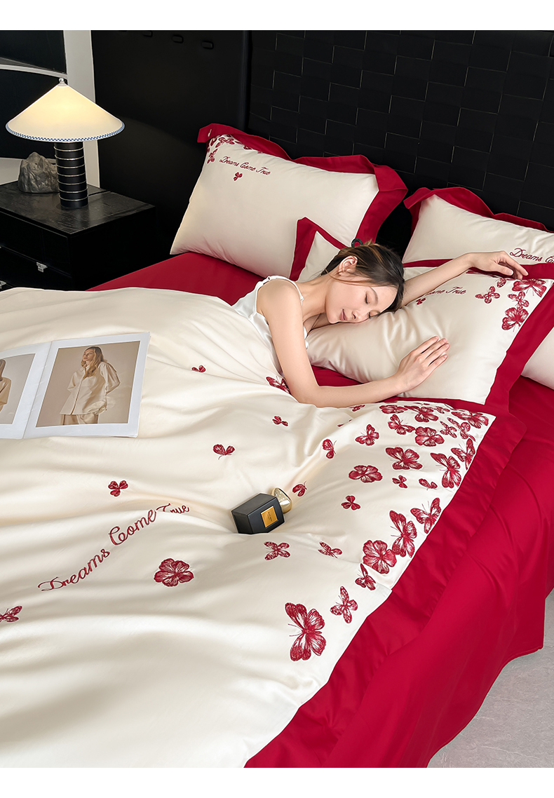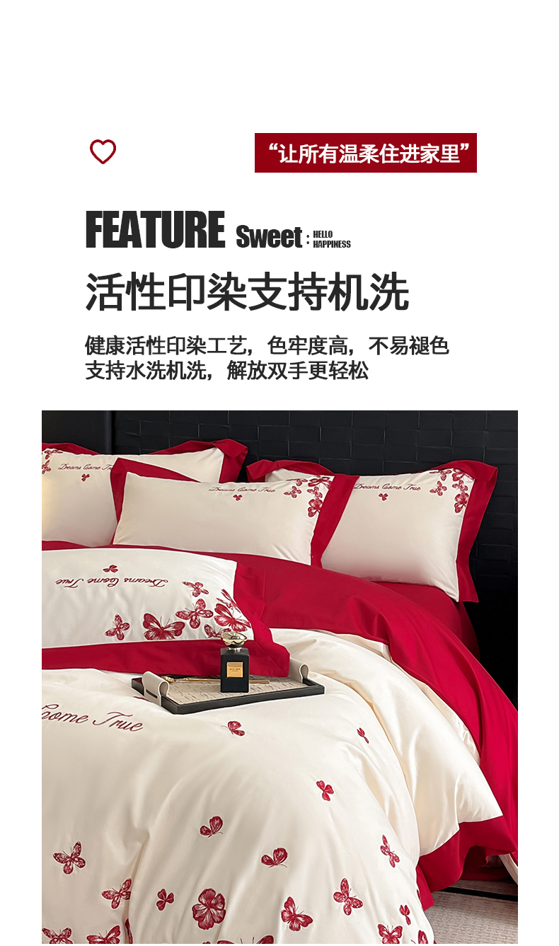 置顶家纺 2025新款亲肤婚庆绣花四件套-花不尽 花不尽-奶白+大红