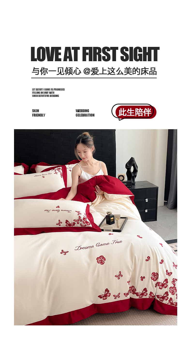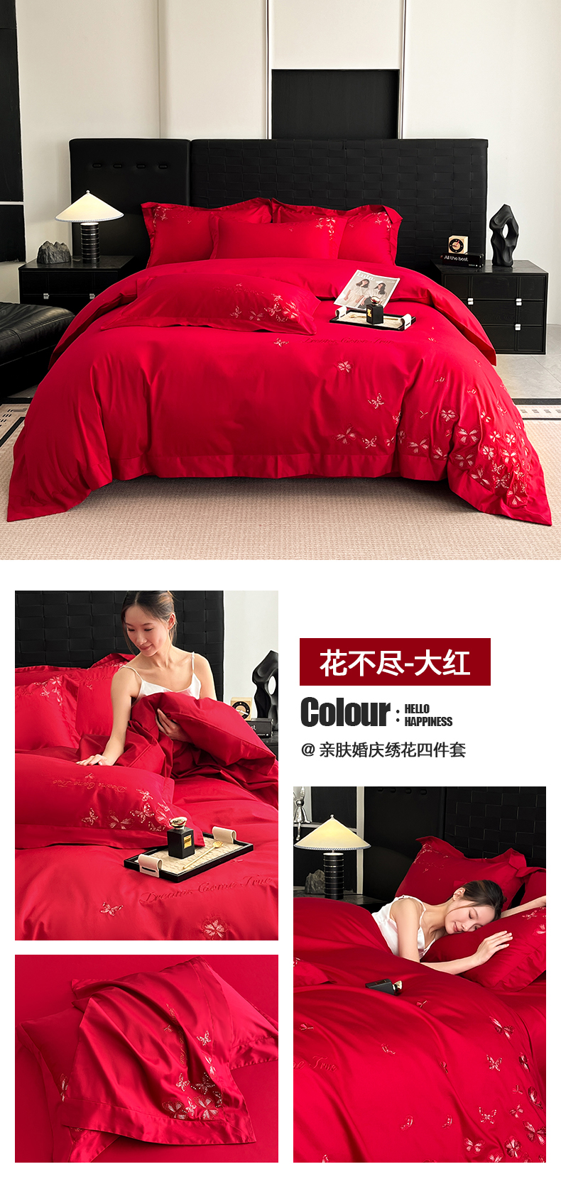 (总)置顶家纺 2025新款新中式棚拍亲肤棉婚庆大红刺绣系列四件套,花开富贵-大红,龙凤新禧-金大红,龙凤盈禧-大红,龙姿凤彩-大红,盛世婚礼-大红,十全十美-大红,喜结连理-大红,喜礼-大红,囍缘-大红,幸福婚礼-大红,迎喜龙凤-大红,永结同心-大红