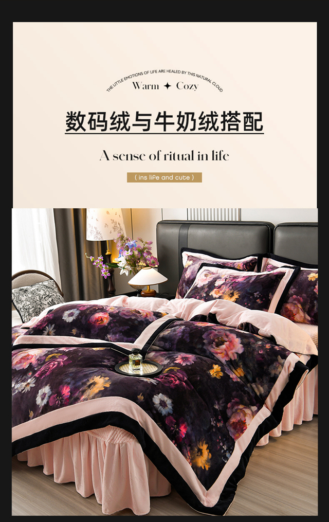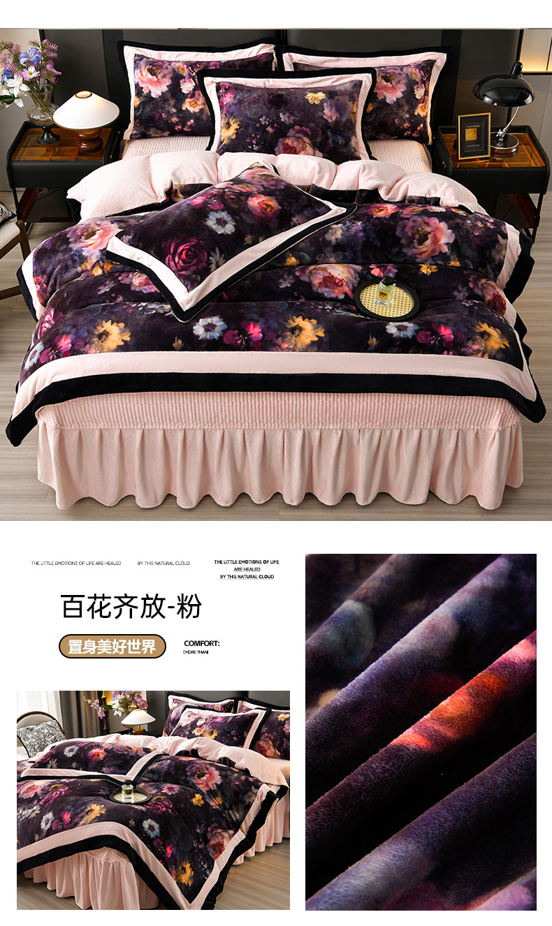 当前位置: 91家纺网 > 商品网购 > 床品套件 > 四件套 > 牛奶绒四件套 > 馨梦缘 2025新款牛奶绒数码印花四件套 百花齐放-粉