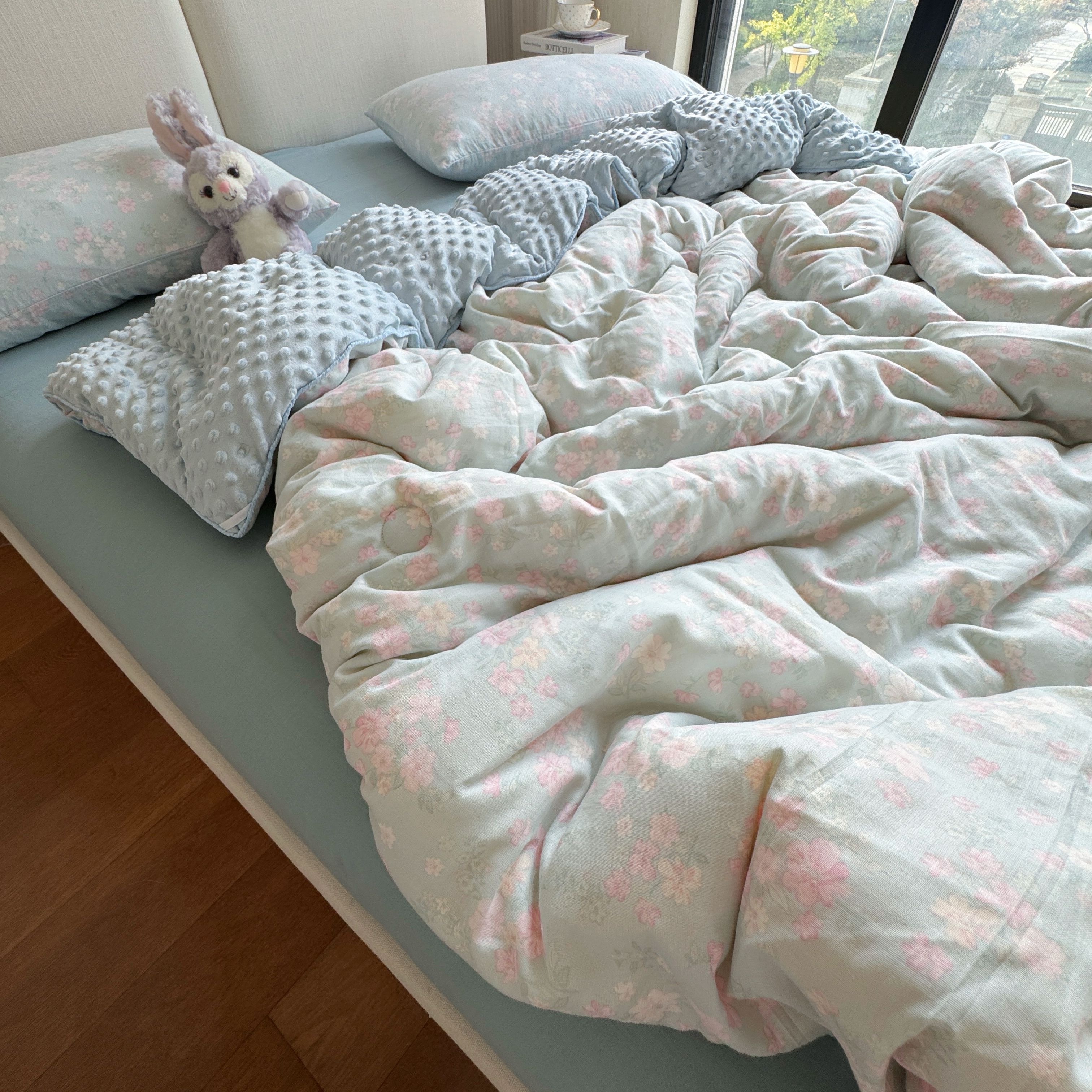 8+8 2025新款全棉A类母婴级抗菌有氧全棉双层纱亲肤全棉小清新印花三件套四件套简约款-雨沫,简约款-雨沫