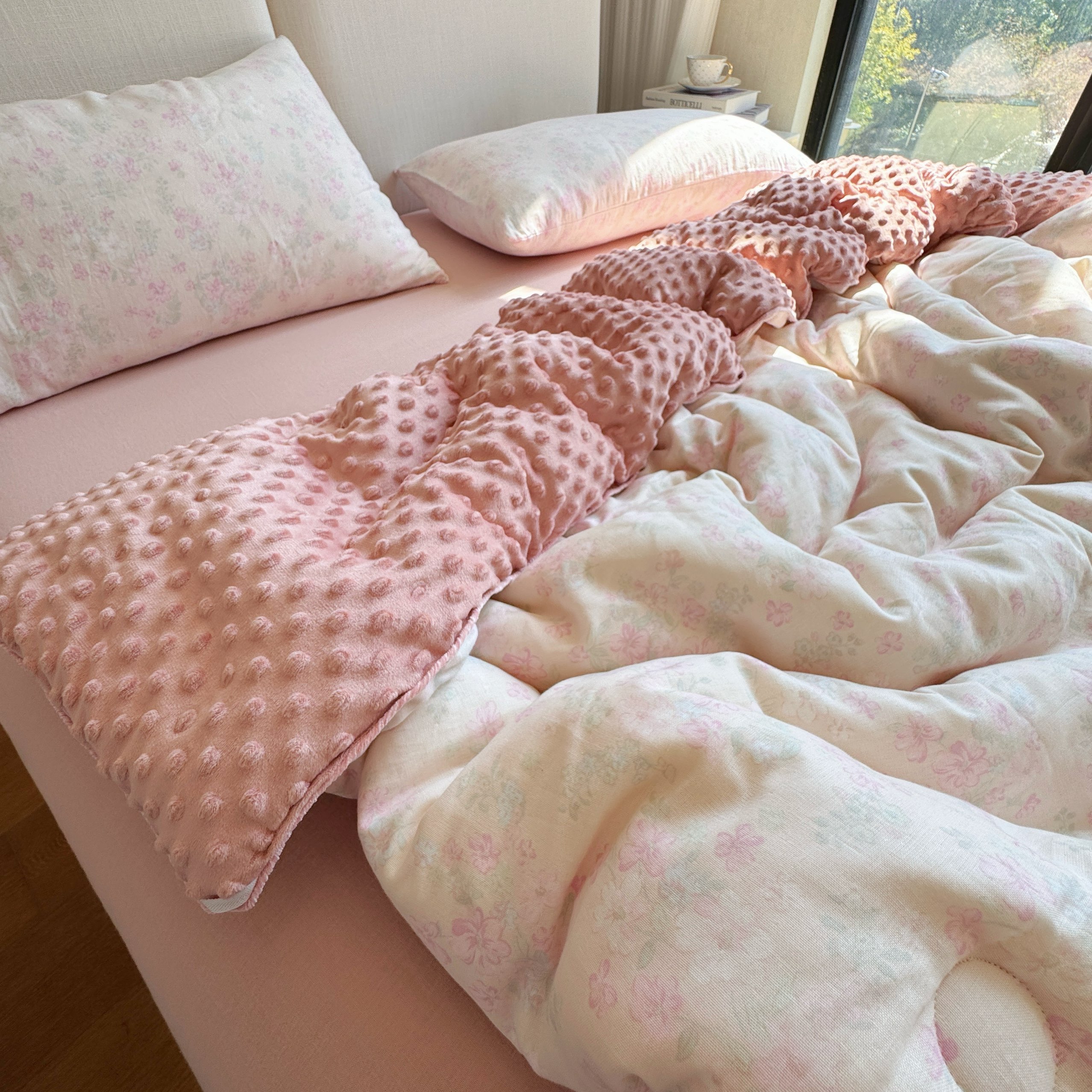 8+8 2025新款全棉A类母婴级抗菌有氧全棉双层纱亲肤全棉小清新印花三件套四件套 简约款-极简主义粉,简约款-极简主义粉