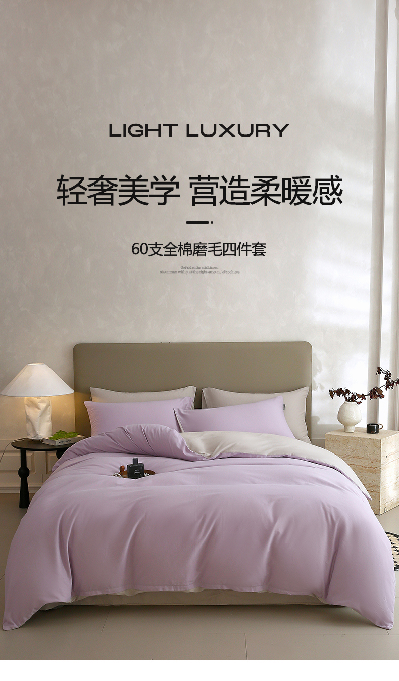 当前位置: 91家纺网 > 商品网购 > 床品套件 > 四件套 > 全棉普通四件套 > 梧桐树 2025新款纯色双拼100%棉磨毛全棉纯棉四件套 紫粟灰