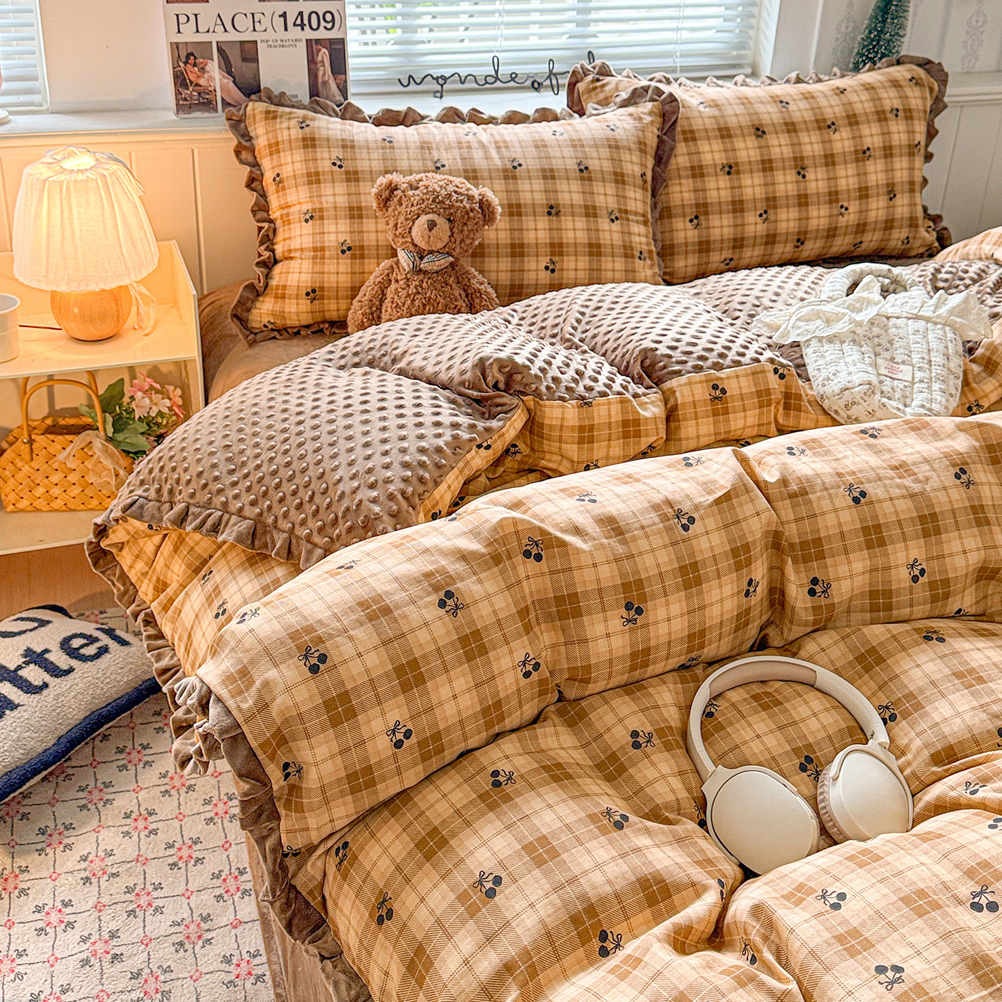 当前位置: 91家纺网 > 商品网购 > 床品套件 > 四件套 > 全棉普通四件套 > 黛馨 2025秋冬新款棉加绒全棉双层纱宝宝绒工艺款花边四件套-花边款 桃夭-花边款