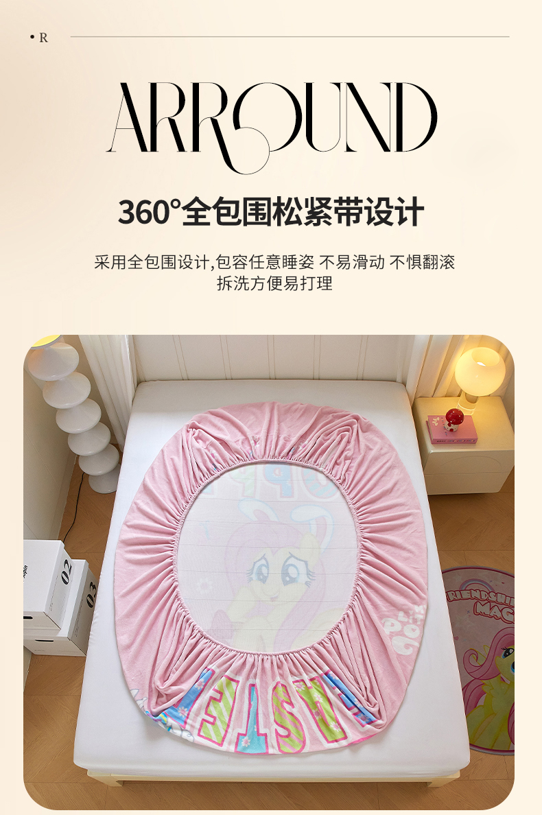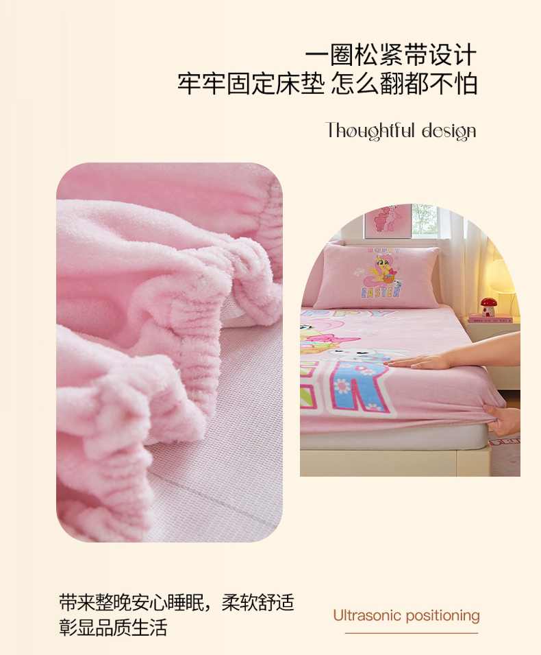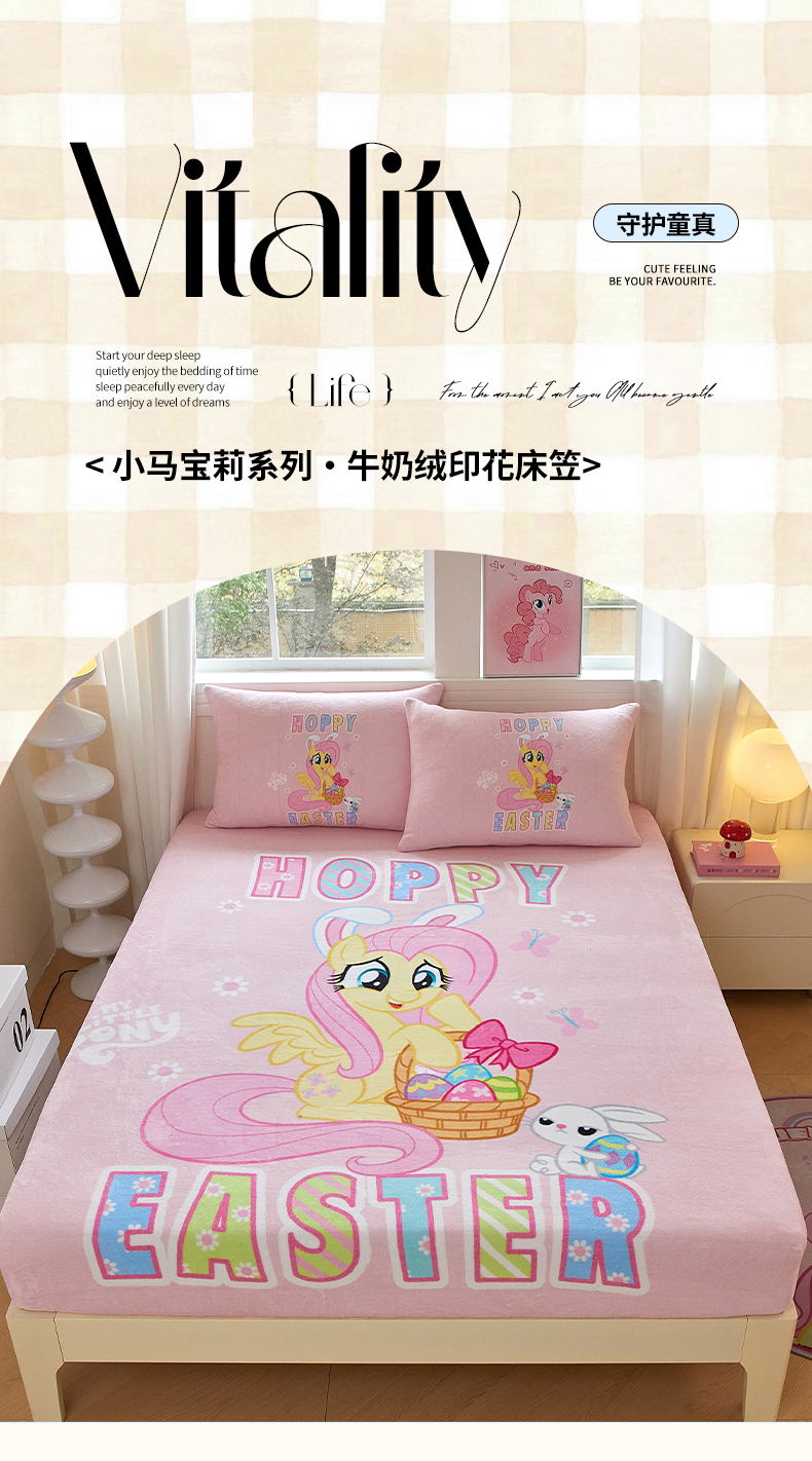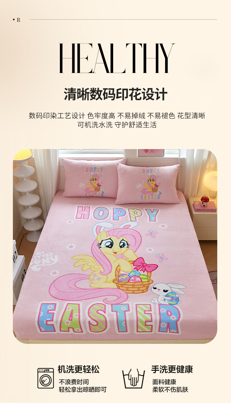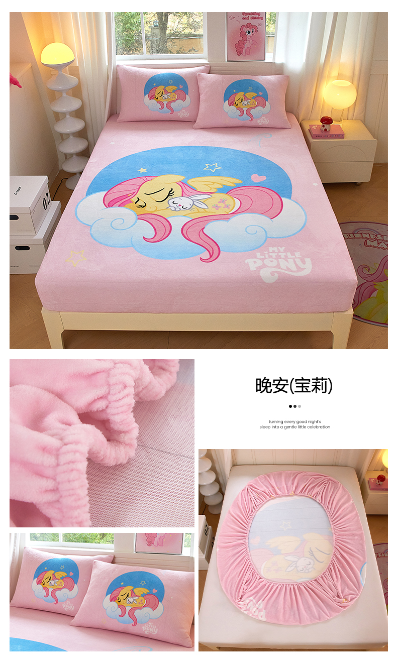 商品名称:蘭菲家纺 2025新款小马宝莉牛奶绒单床笠 床笠单件 粉色(宝莉)