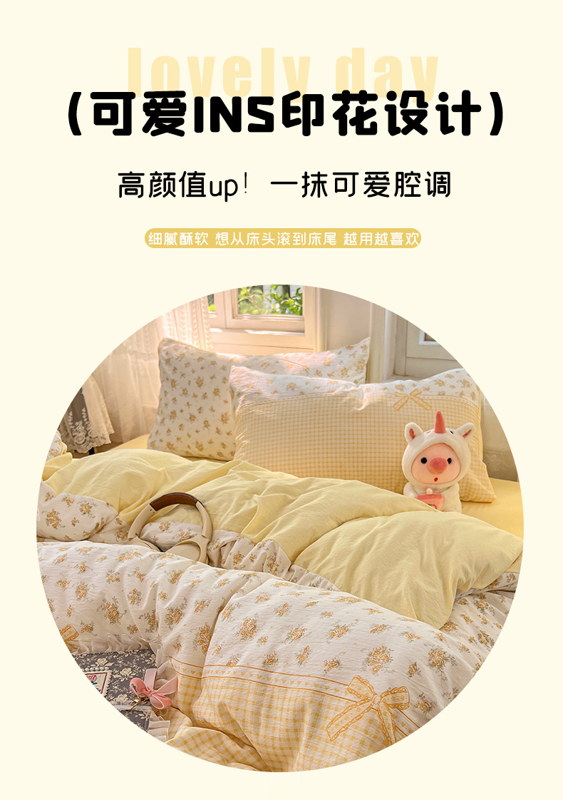当前位置: 91家纺网 > 商品网购 > 床品套件 > 四件套 > 双层纱四件套 > 优佳优品 2025新款高克重云感双层纱印花四件套 暖格花町