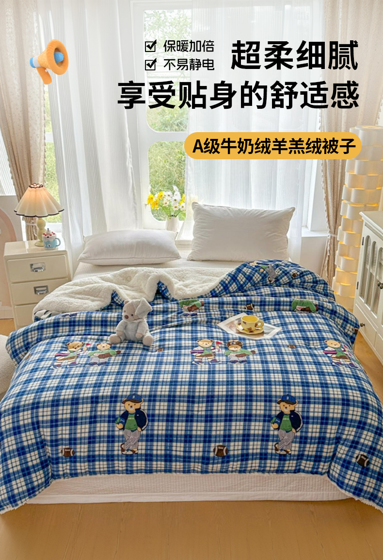 商品名称:(总)爱彼家纺 2025新款奶油风羊羔绒+牛奶绒可爱卡通被子被芯秋被冬被被子被芯-直播热门款