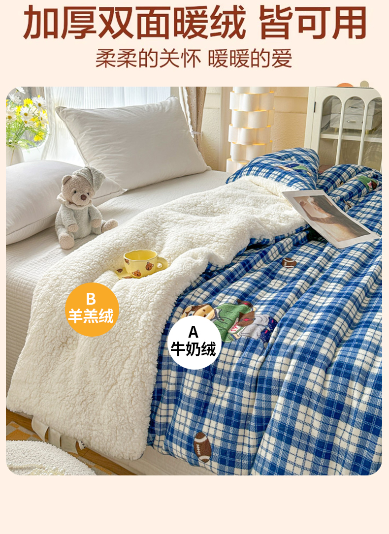 (总)爱彼家纺 2025新款奶油风羊羔绒+牛奶绒可爱卡通被子被芯秋被冬被被子被芯-直播热门款