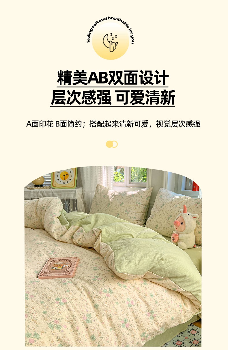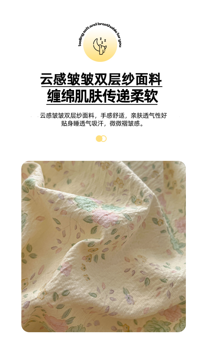 当前位置: 91家纺网 > 商品网购 > 床品套件 > 四件套 > 双层纱四件套 > 优尚佳生活馆 2025新款高克重云感双层纱印花四件套 花絮柔枝