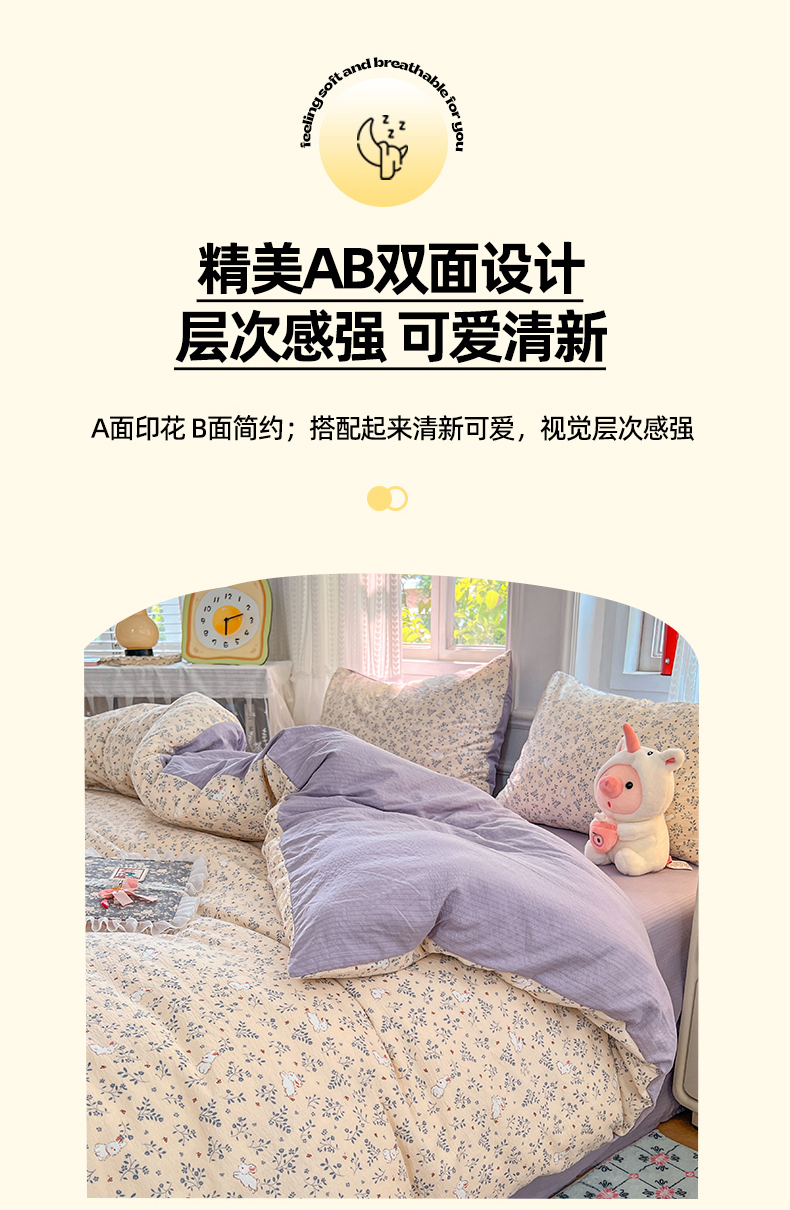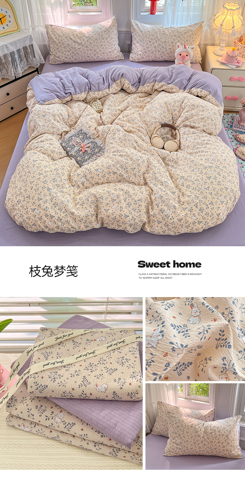 当前位置: 91家纺网 > 商品网购 > 床品套件 > 四件套 > 双层纱四件套 > 优尚佳生活馆 2025新款高克重云感双层纱印花四件套 枝兔梦笺