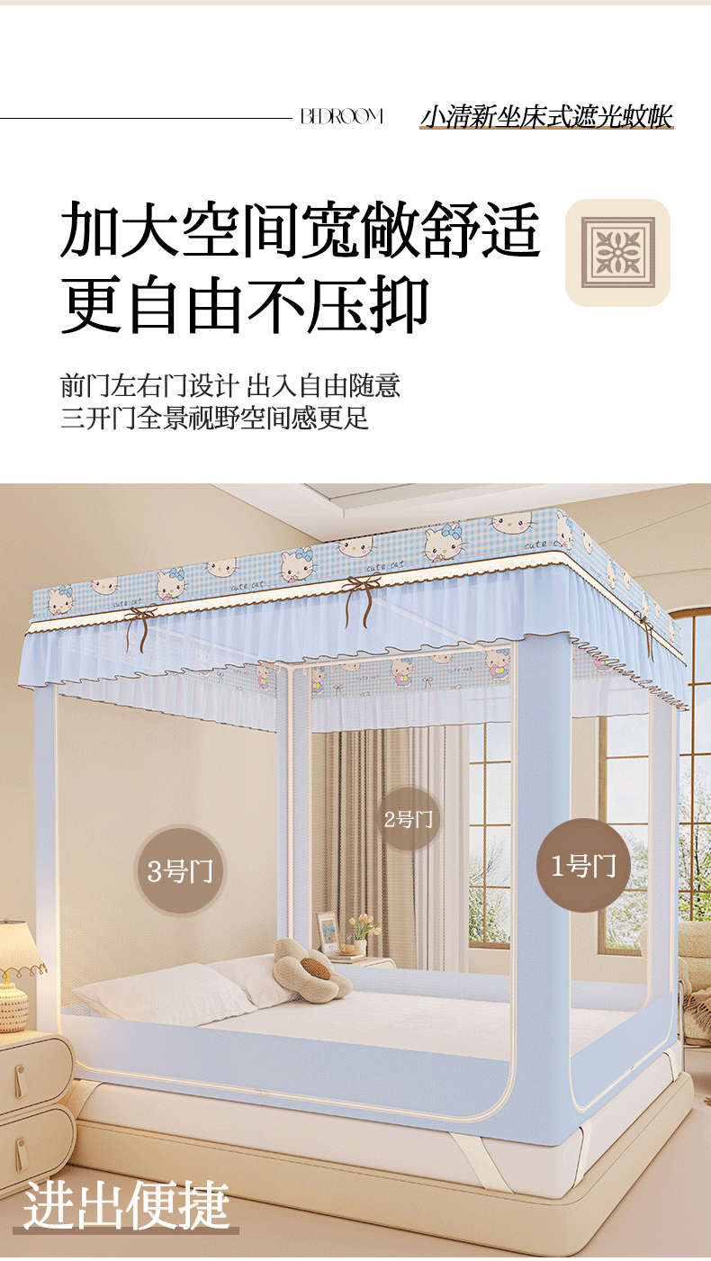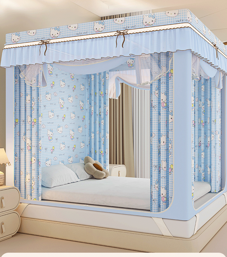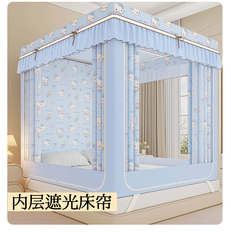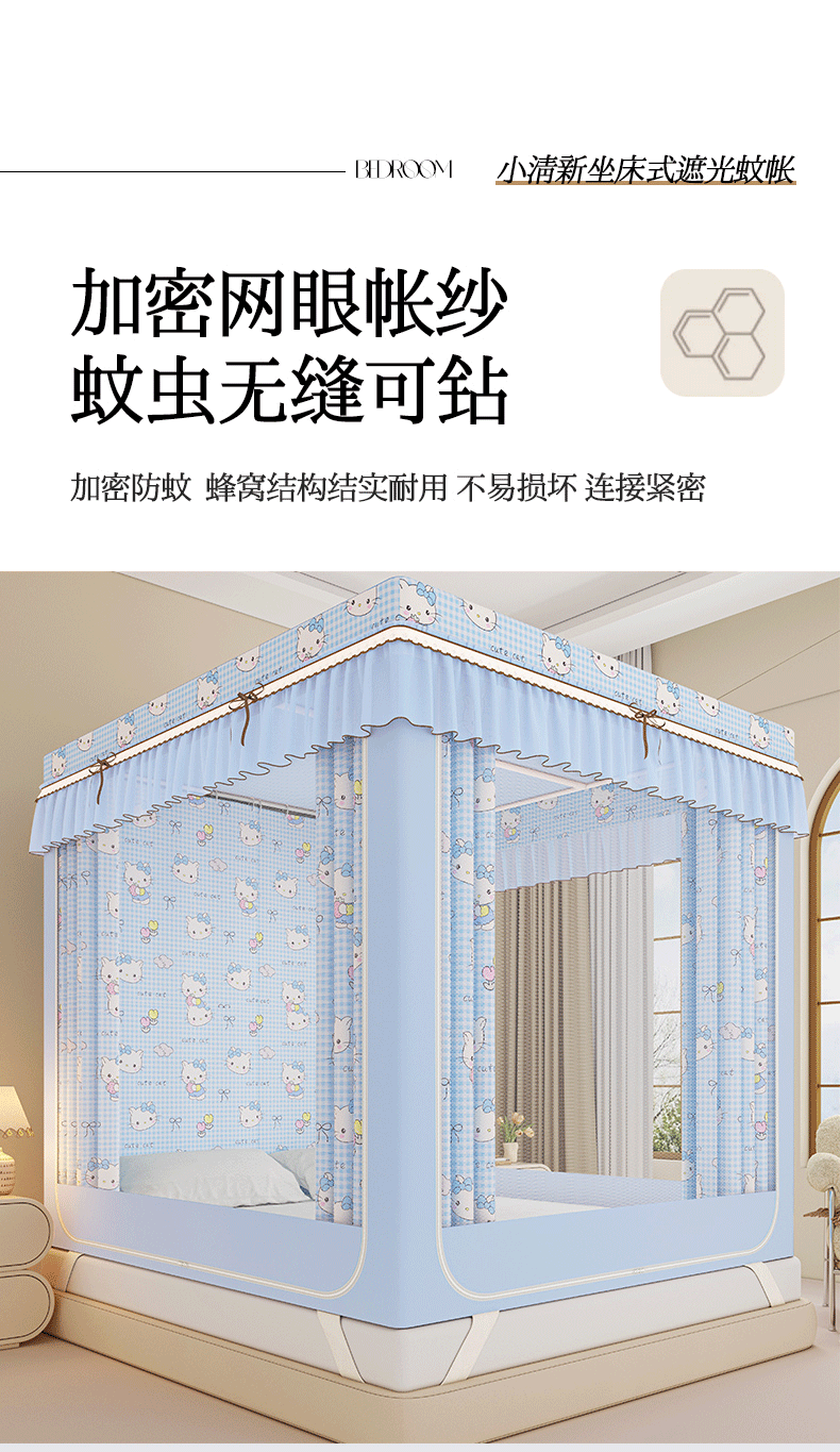 (总)艾晶美家纺有限公司 2025新款韩版卡通印花坐式蚊帐布帘款,Kmi瞄粉玉,蝶恋花,猫星公主,玫瑰小熊,米格熊,香蕉泰迪,Kmi瞄蓝