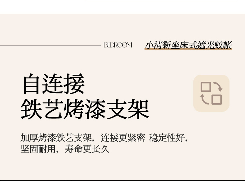 200*220蚊帐+加厚锁扣扁管支架+布帘