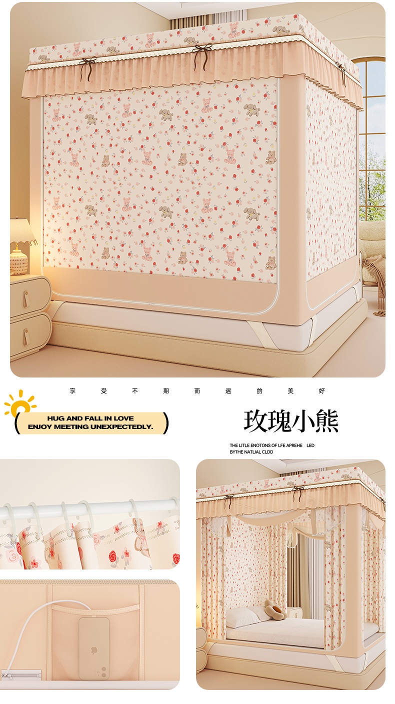 (总)艾晶美家纺有限公司 2025新款韩版坐床夹棉保暖遮光蚊帐,夹棉款-玫瑰小熊,夹棉款-米格熊,夹棉款-kmi瞄蓝,夹棉款-蝶恋花,夹棉款-猫星公主,夹棉款-香蕉泰迪,夹棉款-kmi瞄粉玉