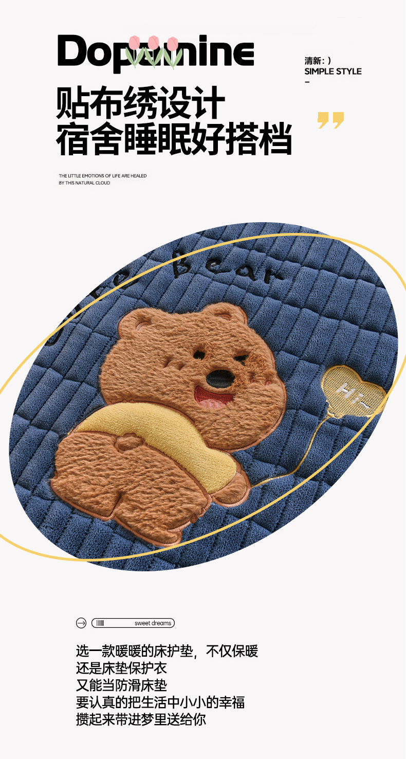 (总)悠米悠家 2025新款学生款兔毛绒刺绣夹棉上下铺床褥,小狗-粉色,小狗-绿色,小狗-蓝色,小狗-红色,小狗-卡其色,小狗-深蓝,小狗-灰色,小熊-深蓝,小熊-灰色,小熊-红色,小熊-粉色,小熊-绿色,小熊-卡其色,小熊-蓝色