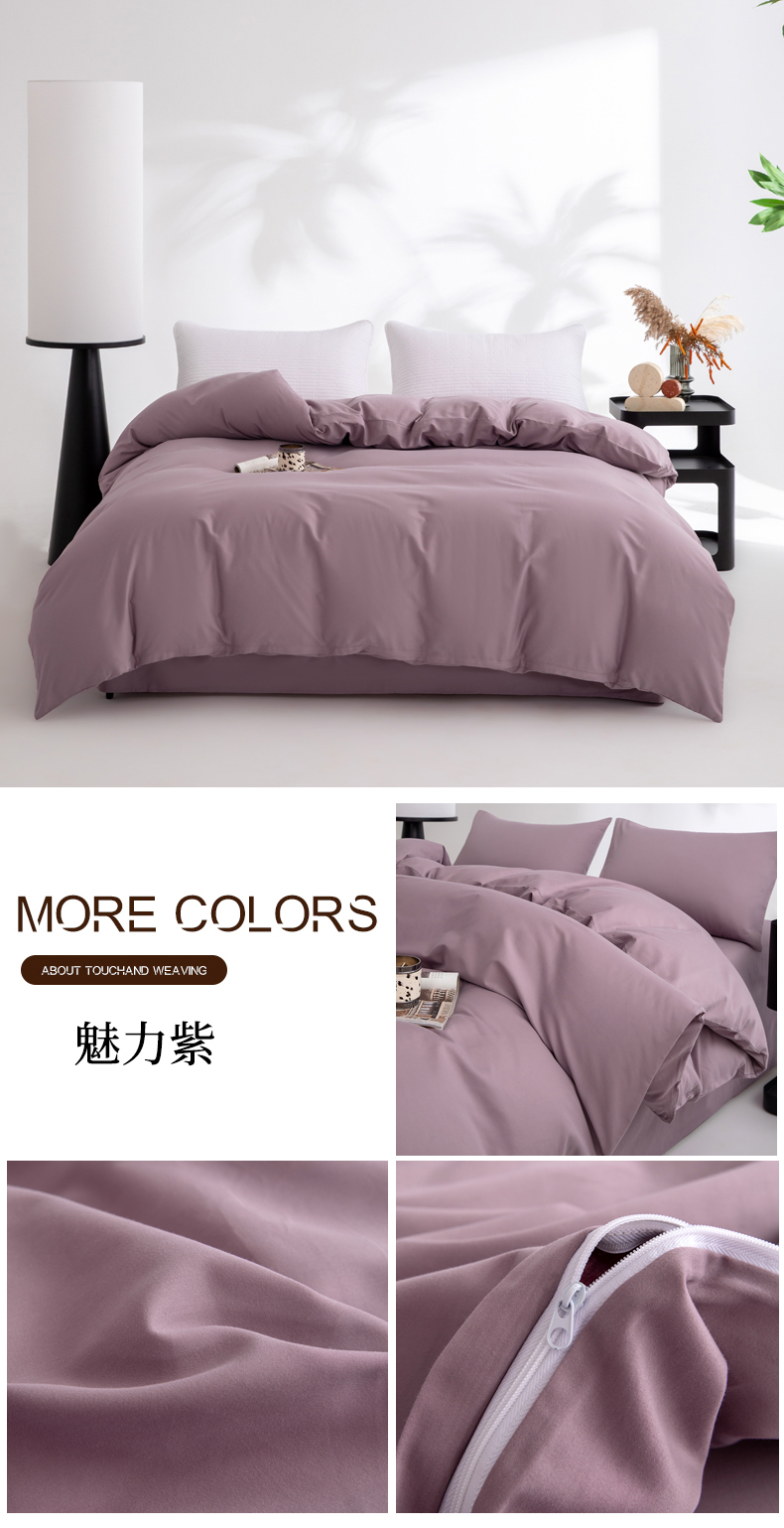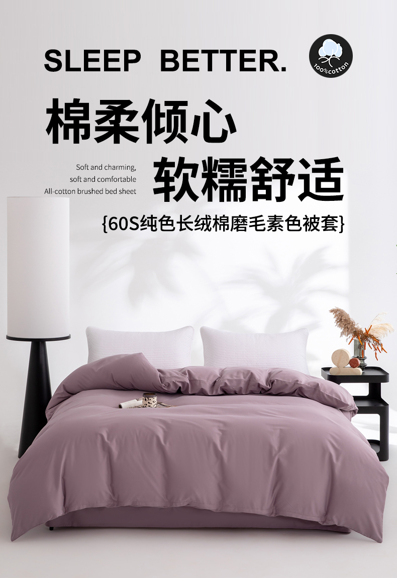 (总)寝柔家纺 2025新款60S全棉磨毛纯色纯棉长绒棉被套单双人床,魅力紫,奶霜黄,暖橙,少女粉,水波兰,碳木灰,午夜蓝,杏驼