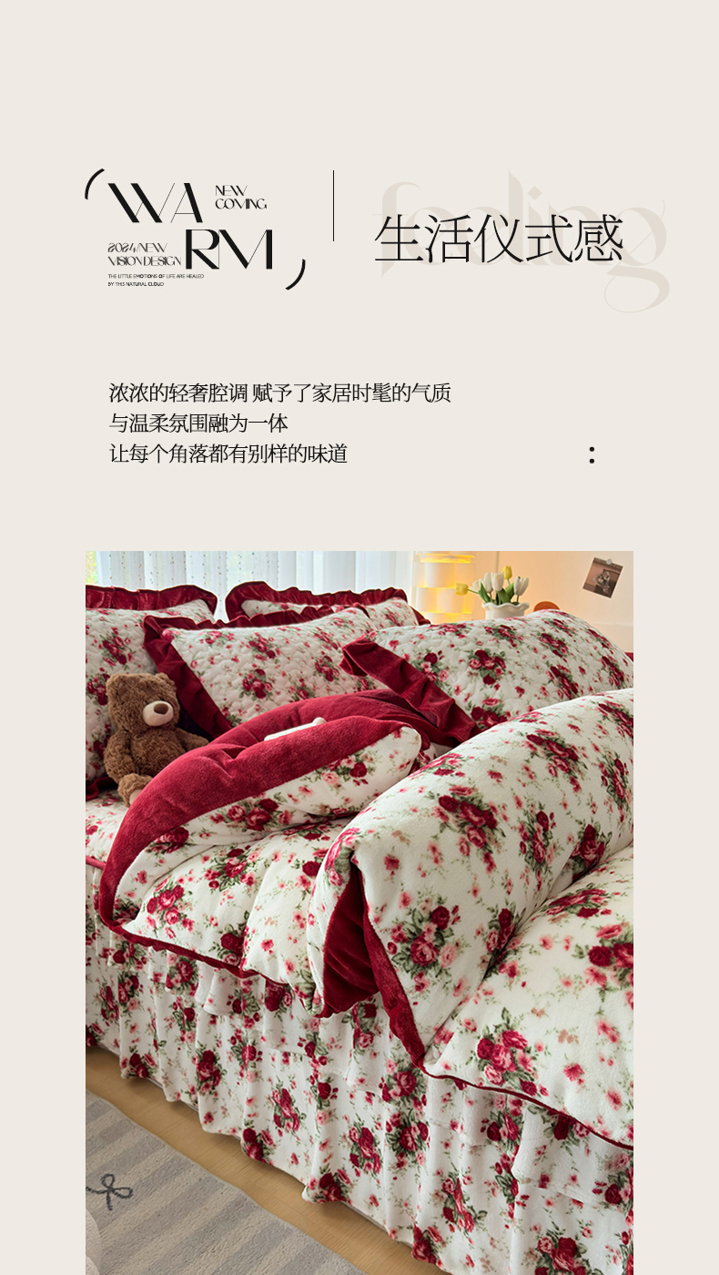 当前位置: 91家纺网 > 商品网购 > 床品套件 > 四件套 > 牛奶绒四件套 > 铠畅家纺 2025新款牛奶绒夹棉床盖床裙四件套 倾国倾城