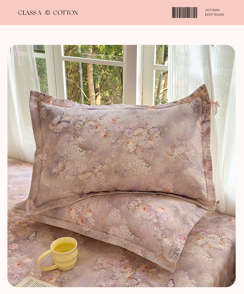 商品名称:拾物记 2025新款A类全棉纯棉加厚超柔磨毛单枕套(提供买家秀质检报告和实验视频) 雾野花蝶