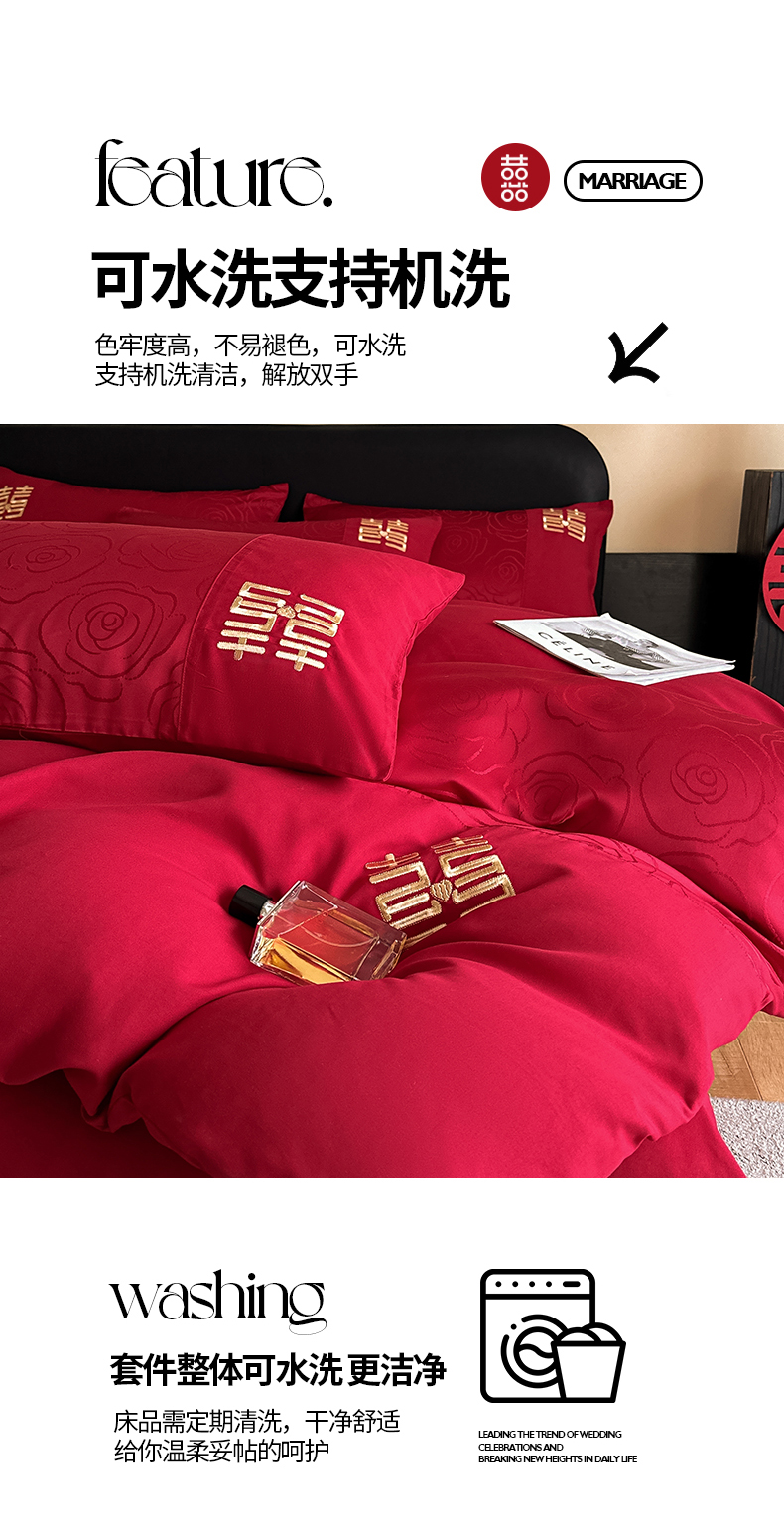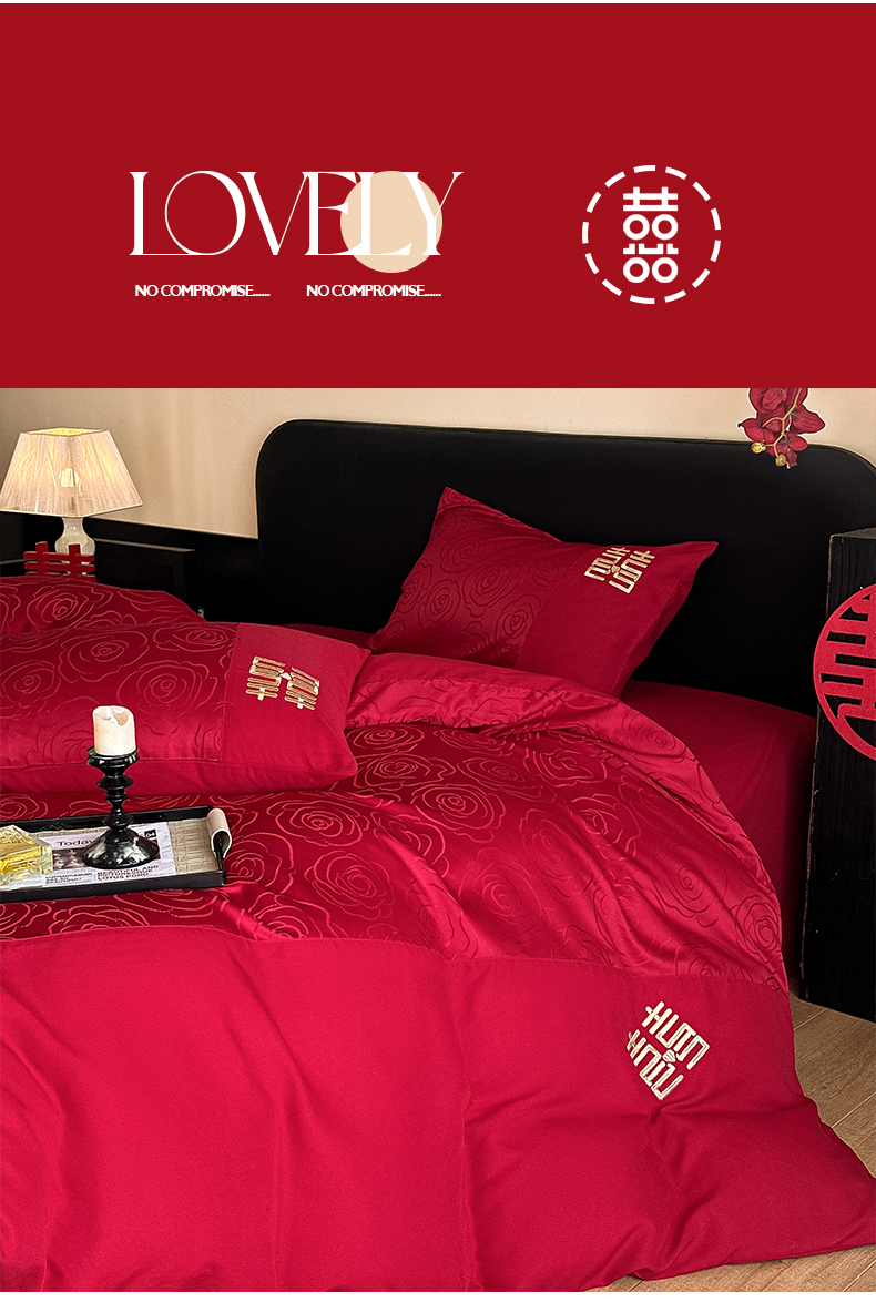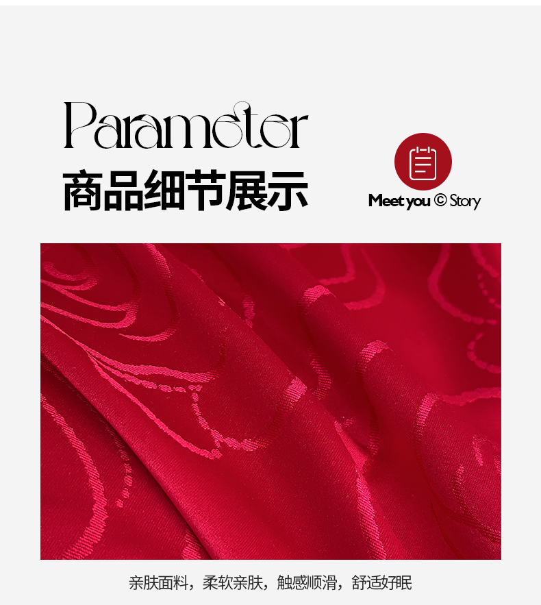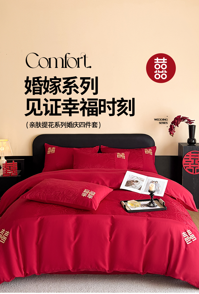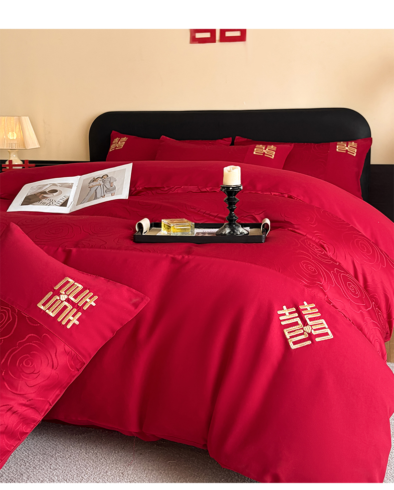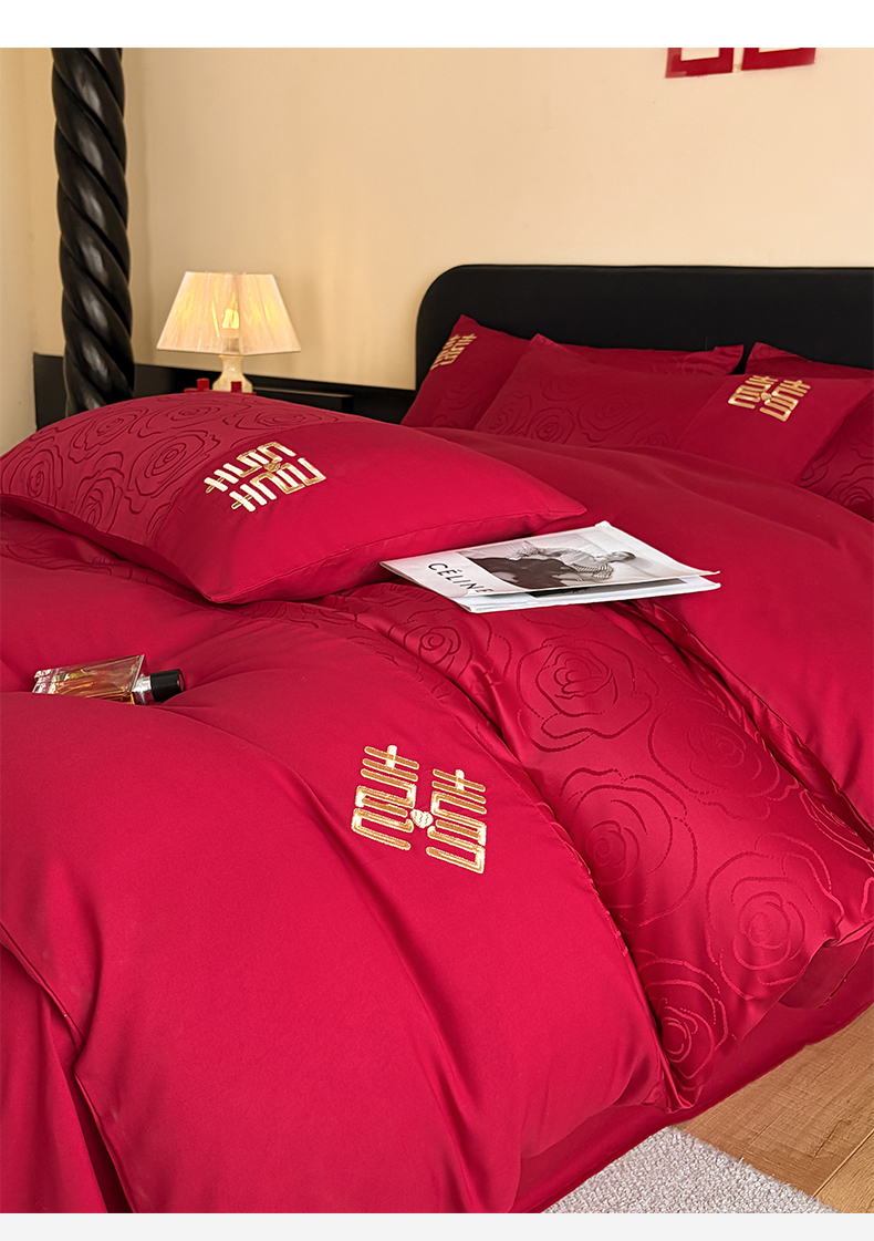 当前位置: 91家纺网 > 商品网购 > 床品套件 > 四件套 > 婚庆四件套 > 置顶家纺 2025新款亲肤提花玫瑰婚庆四件套 浪漫几何-大红