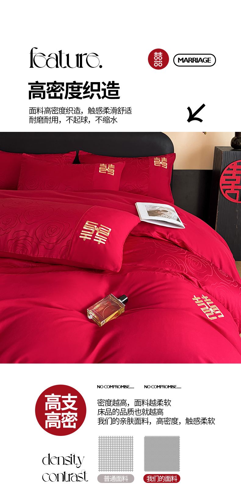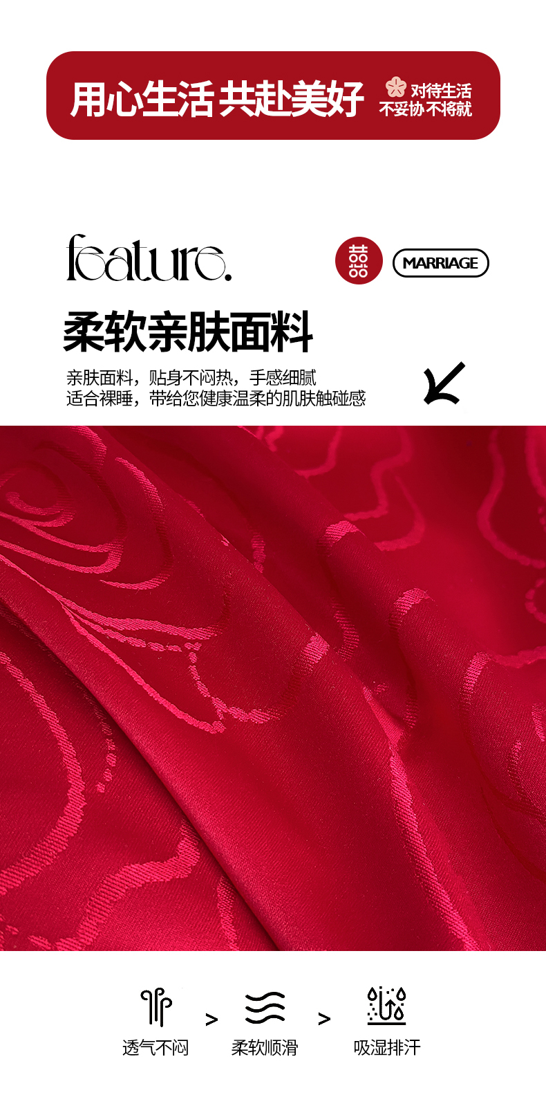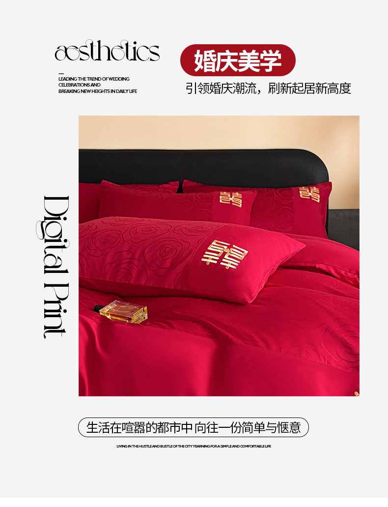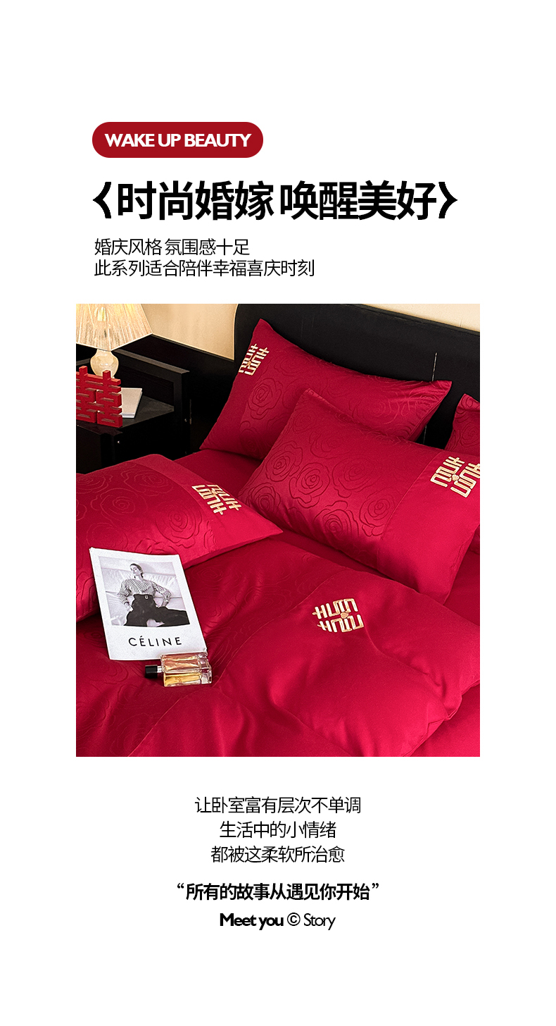 当前位置: 91家纺网 > 商品网购 > 床品套件 > 四件套 > 婚庆四件套 > 置顶家纺 2025新款亲肤提花玫瑰婚庆四件套 浪漫几何-大红
