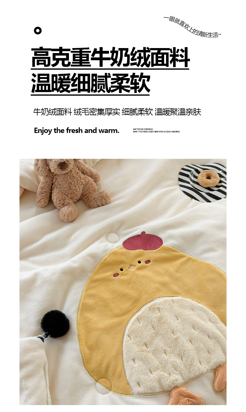 • 91家纺网 家纺一手货源 找家纺 (总)暖生活 2025新款立体牛奶绒小毛球系列秋冬被被子被芯,组合,小黄鸡,小象和小鸡,星星宝贝,牙刷小熊