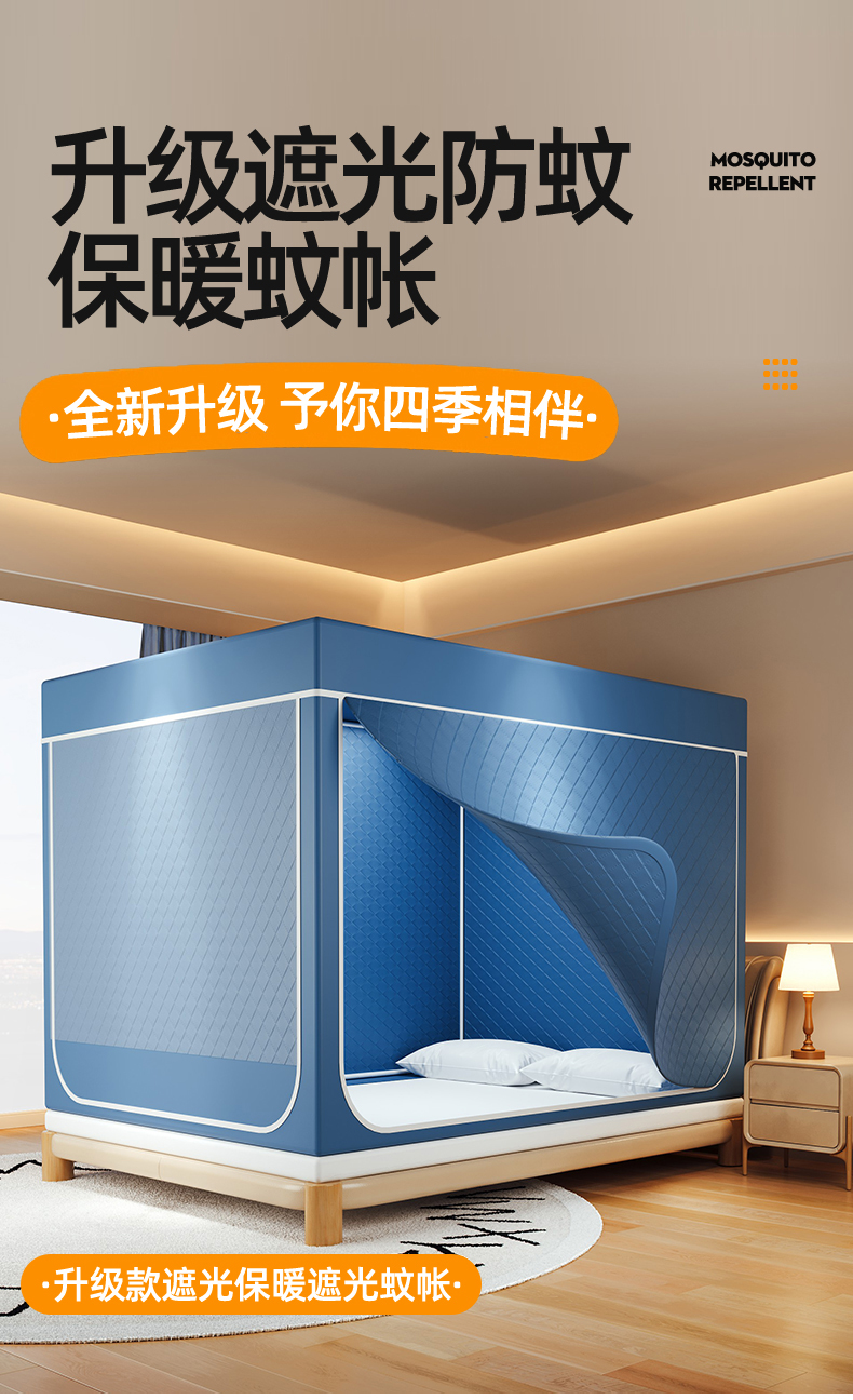 (总)2025新款夹棉保暖遮光蚊帐终版,粉色,灰色,蓝色,深蓝