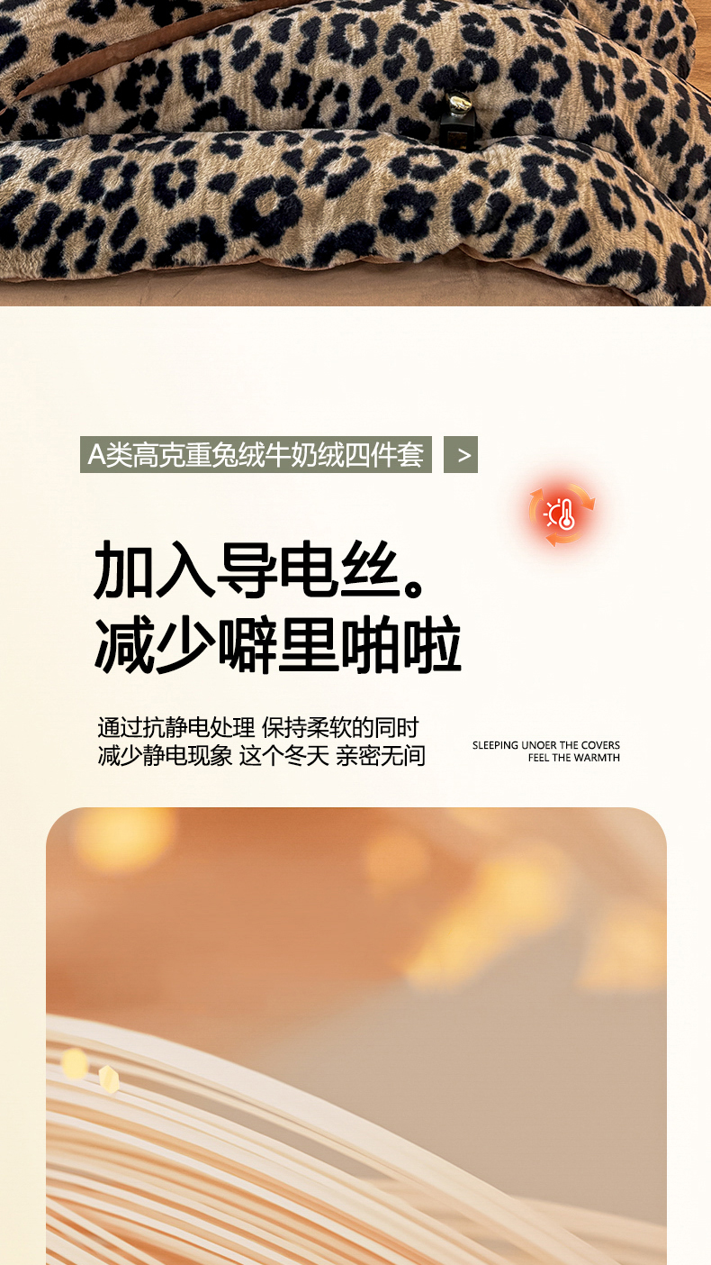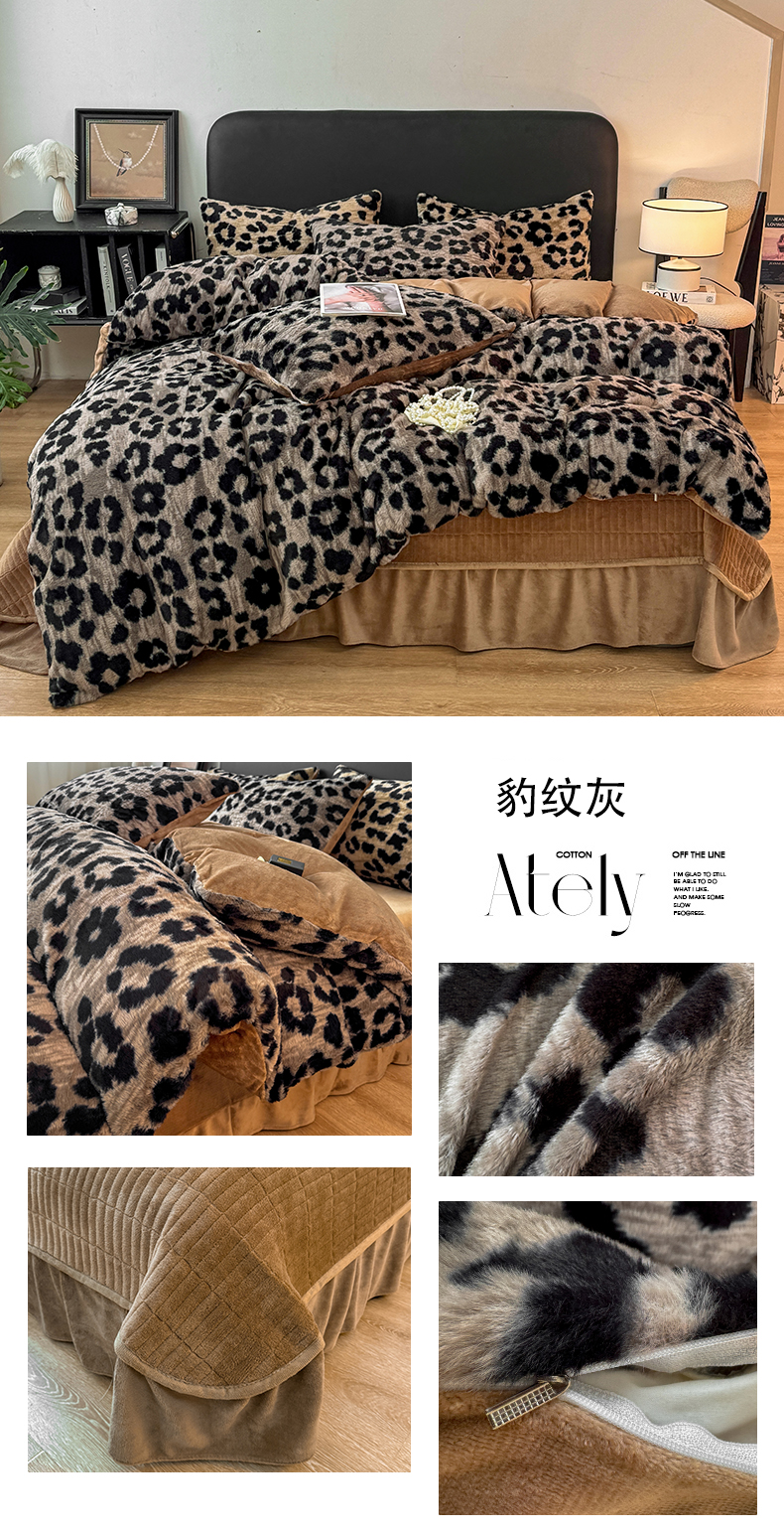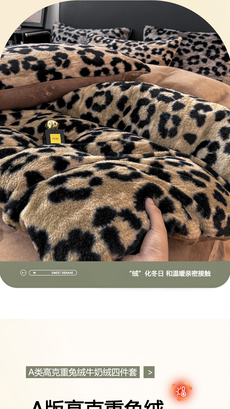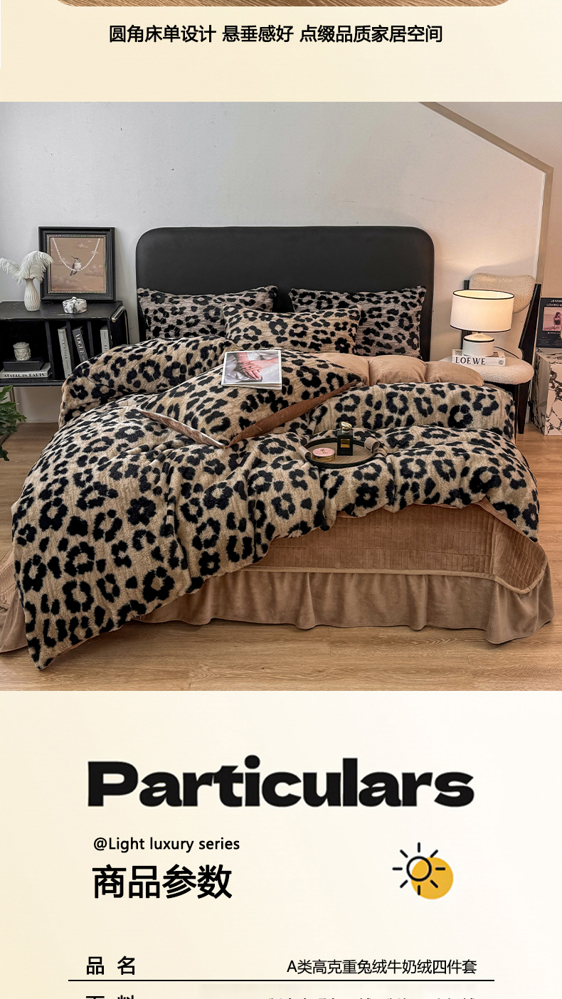 当前位置: 91家纺网 > 商品网购 > 床品套件 > 四件套 > 牛奶绒四件套 > 乐窝家纺仓储 2025新款【8斤重】轻奢复古高克重美拉德兔兔绒牛奶绒床单款床笠款床盖款四件套单床单单被套枕套(日发50套优惠8元一套) 豹纹咖