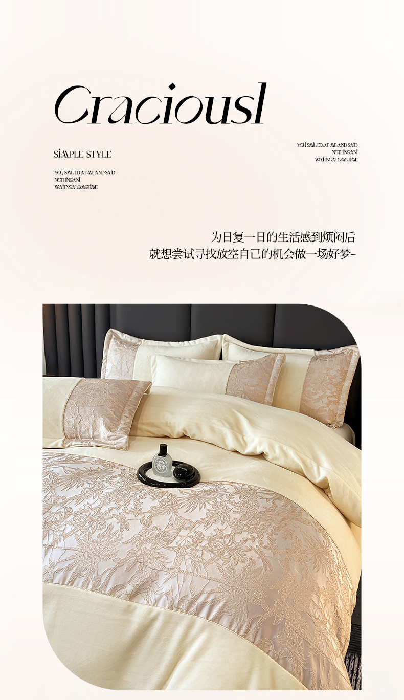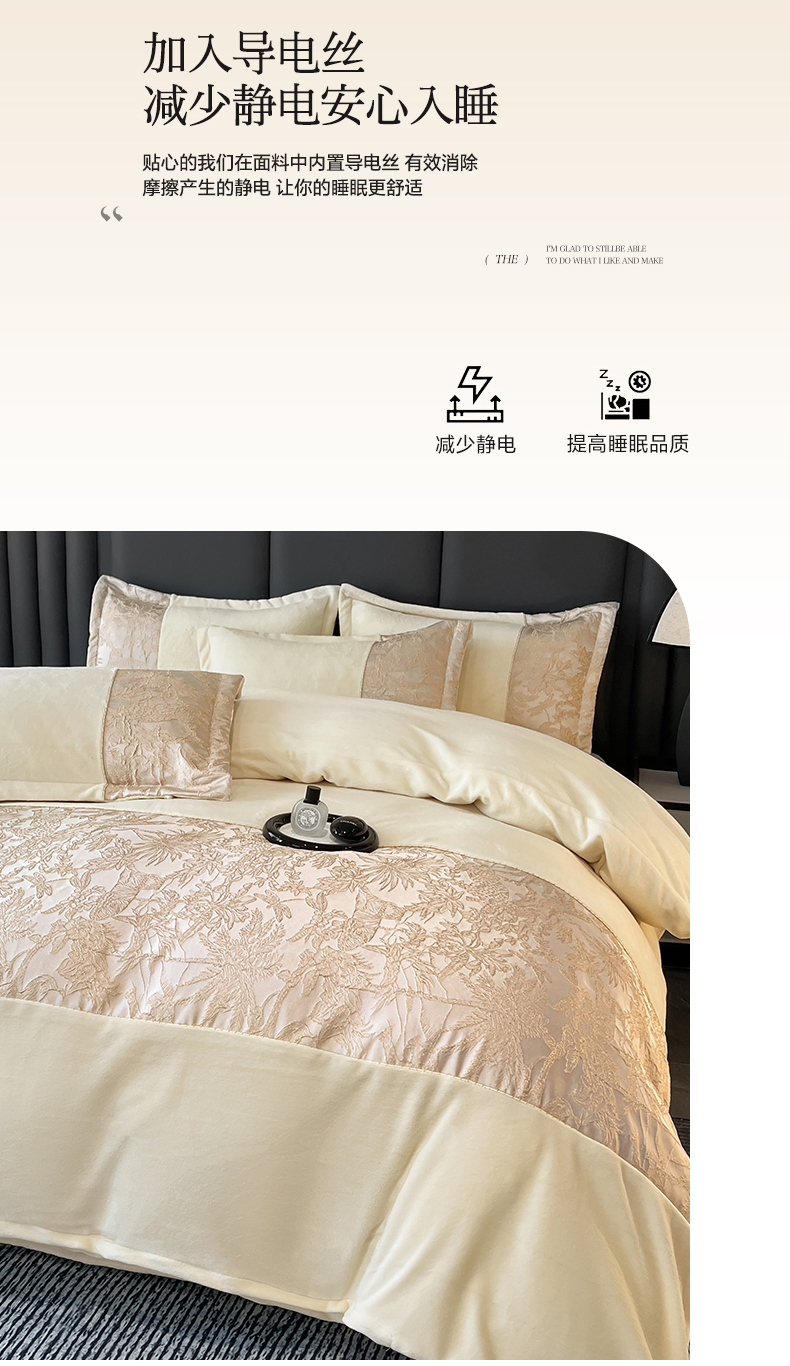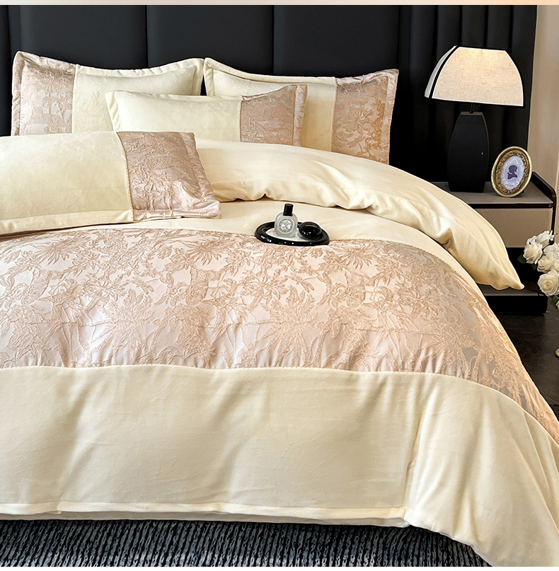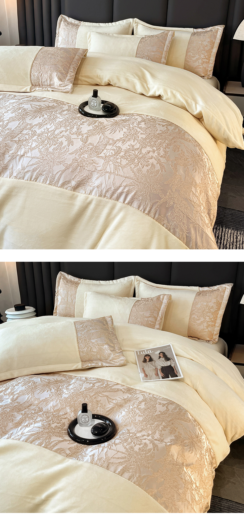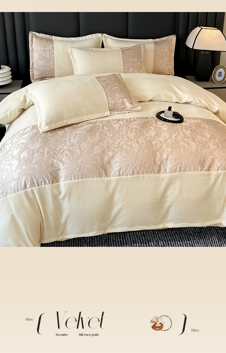 (总)富宁家纺 2025新款立体雕花牛奶绒绣花四件套-洛卡玫瑰系列,洛卡白,玫瑰灰,洛卡咖,玫瑰粉,洛卡蓝