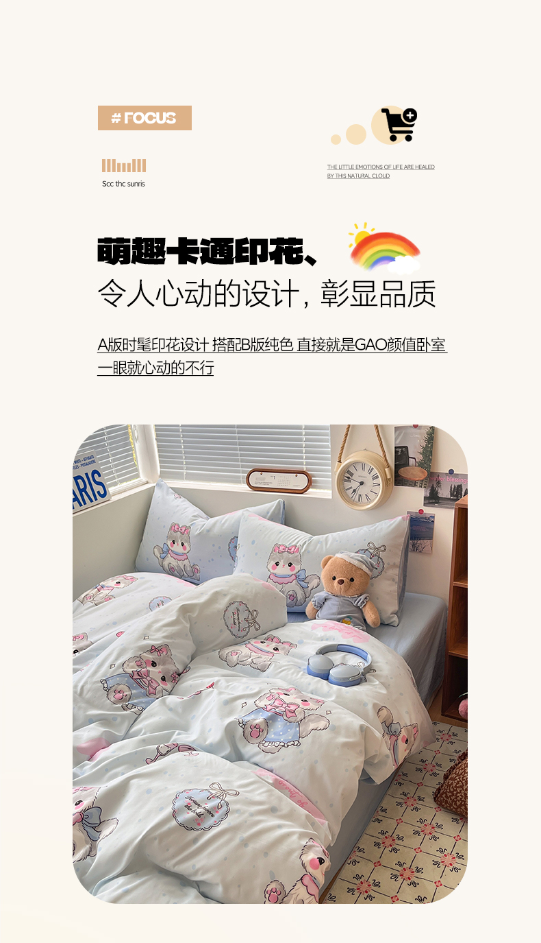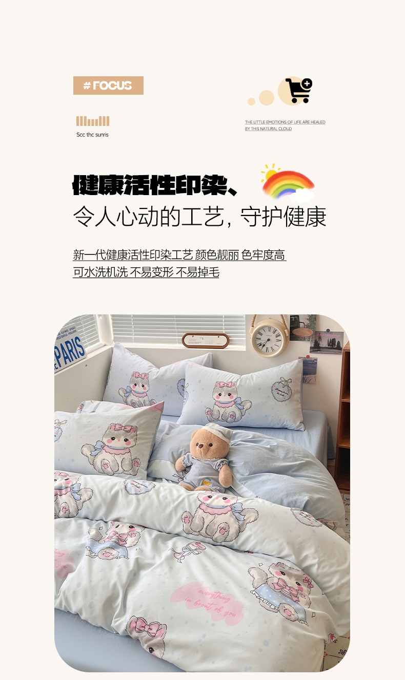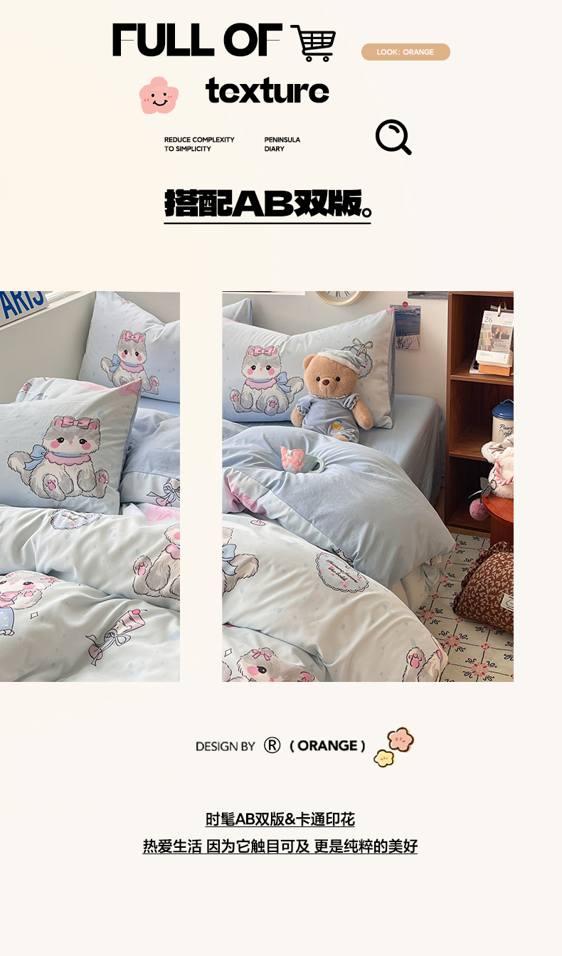 当前位置: 91家纺网 > 商品网购 > 床品套件 > 四件套 > 水洗棉四件套 > 优承佳生活馆 2026新款洛丽塔风水洗印花四件套学生三件套单被套系列 软萌宠物