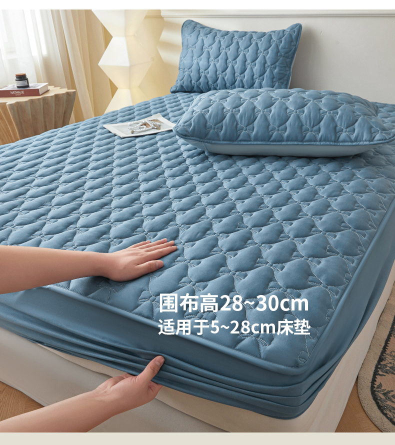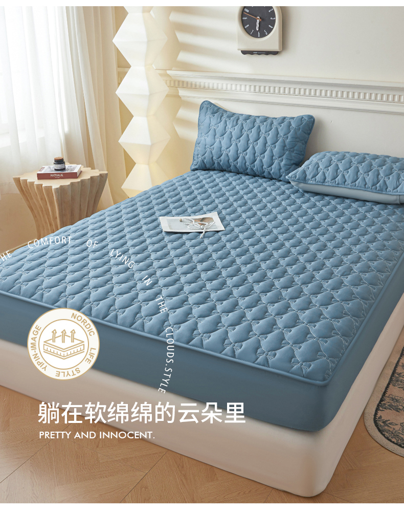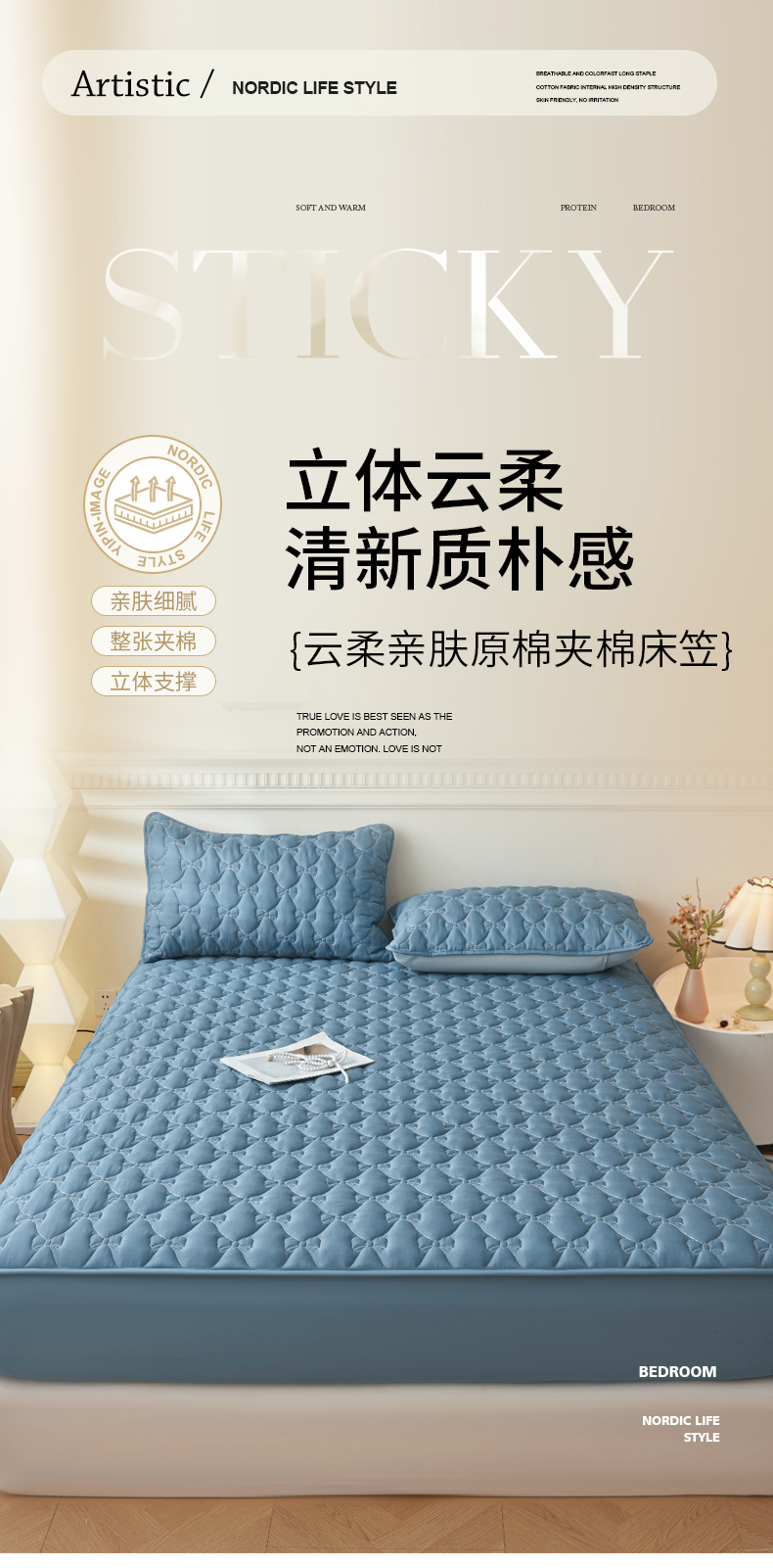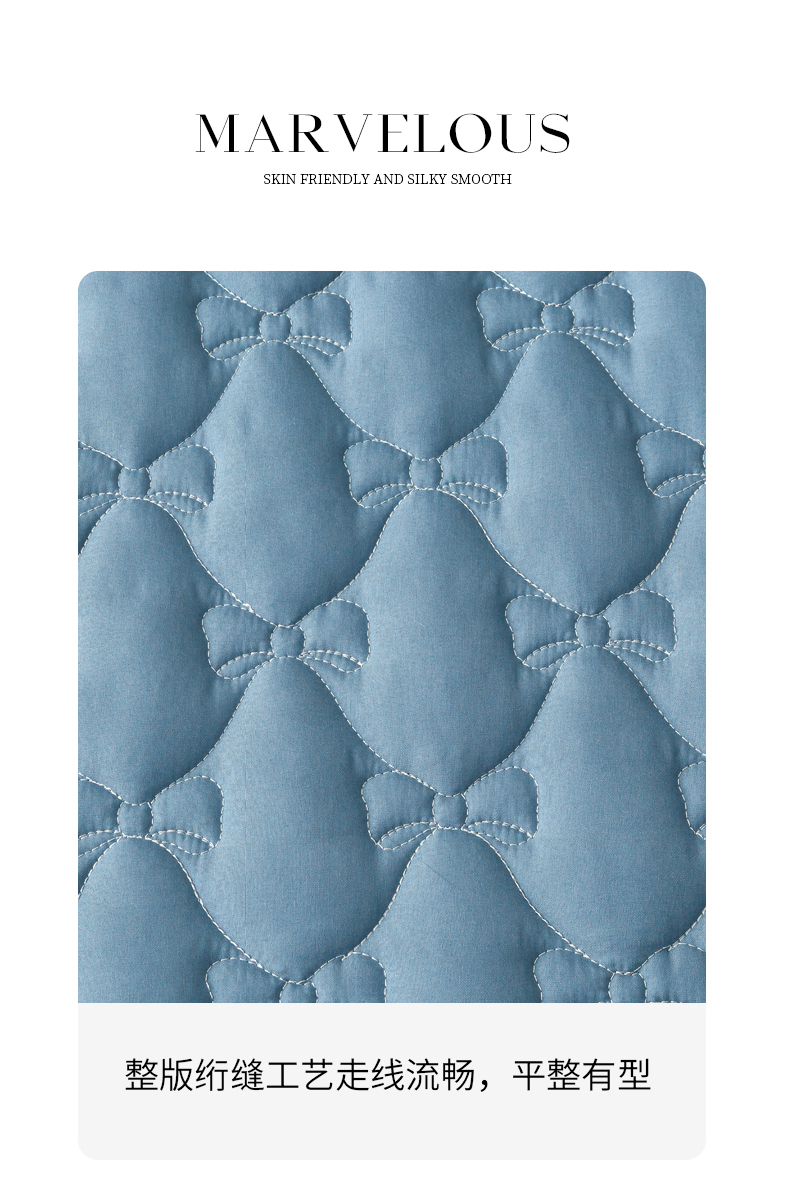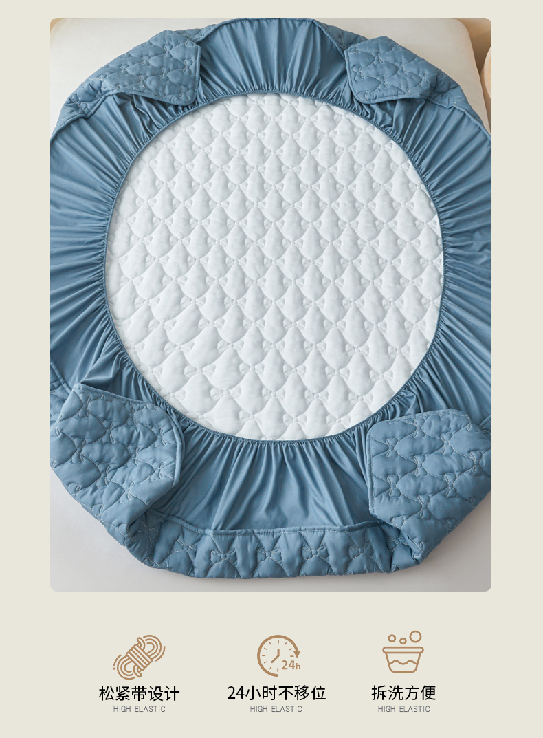 • 91家纺网 家纺一手货源 找家纺 LIFE.丽芙 2025新款水洗原棉单件蝴蝶结绗缝夹棉床笠三件套 蝴蝶结床笠-宾利蓝