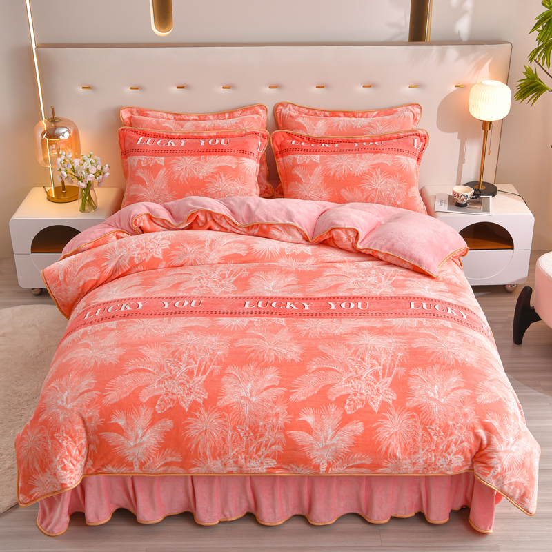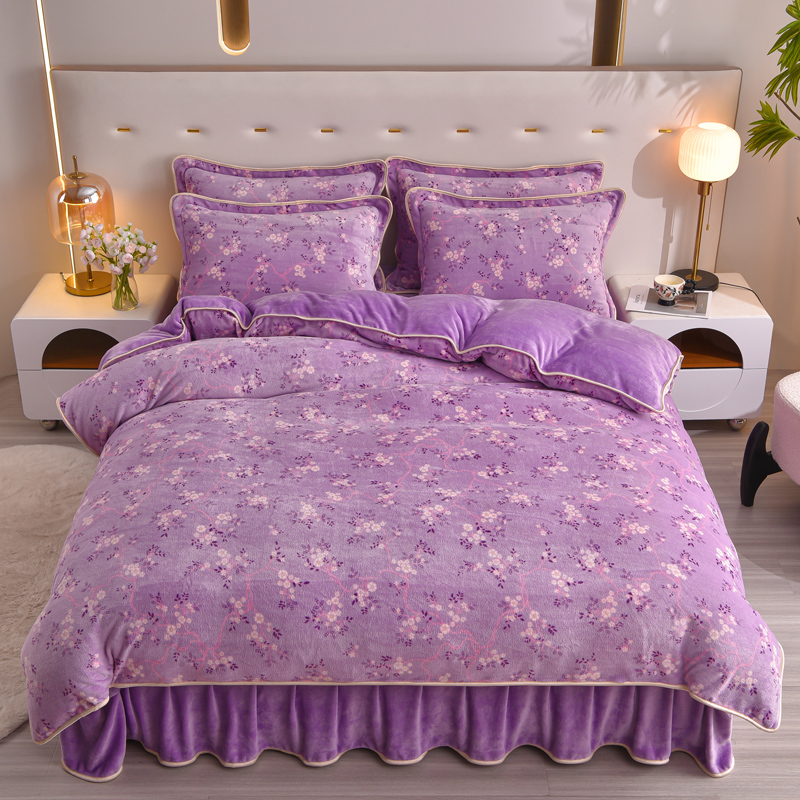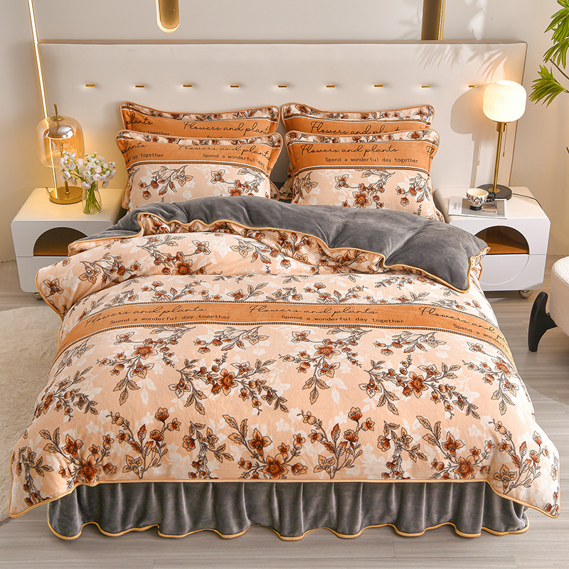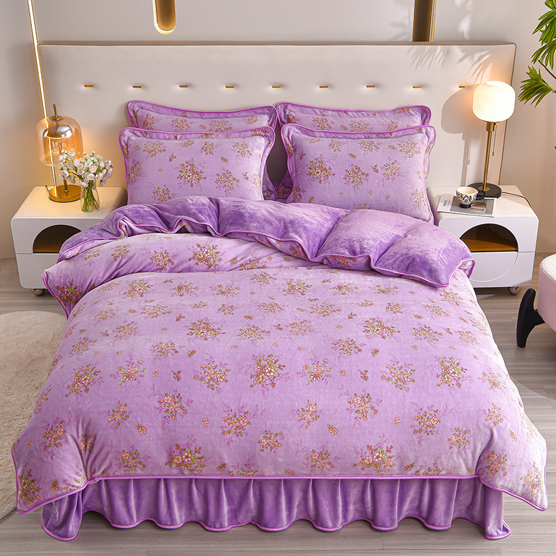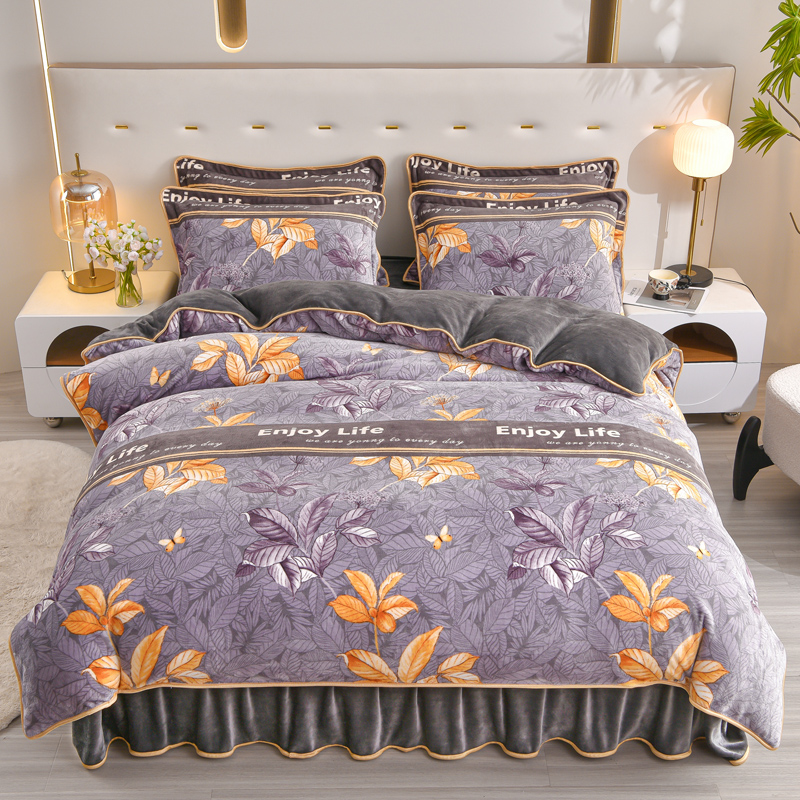 (总)仟岸家纺 2025新款高克重床裙款印花牛奶绒四件套,初遇,赫本,简约,花韵,琉璃紫,知秋,秋意浓,羽叶,梦蝶,福瓜,玫瑰情缘,流金岁月