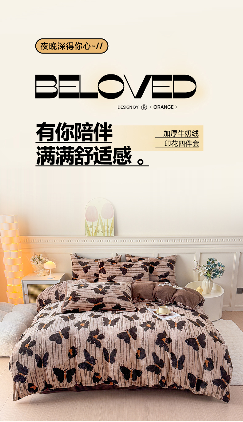 (总)仟岸家纺 2025新款牛奶绒印花四件套,豹纹咖,草莓喵,蝴蝶,蝴蝶结爱心,花妖白,花妖黑,花枝绿,玫瑰灰,玫瑰咖,顽皮狗,小点点