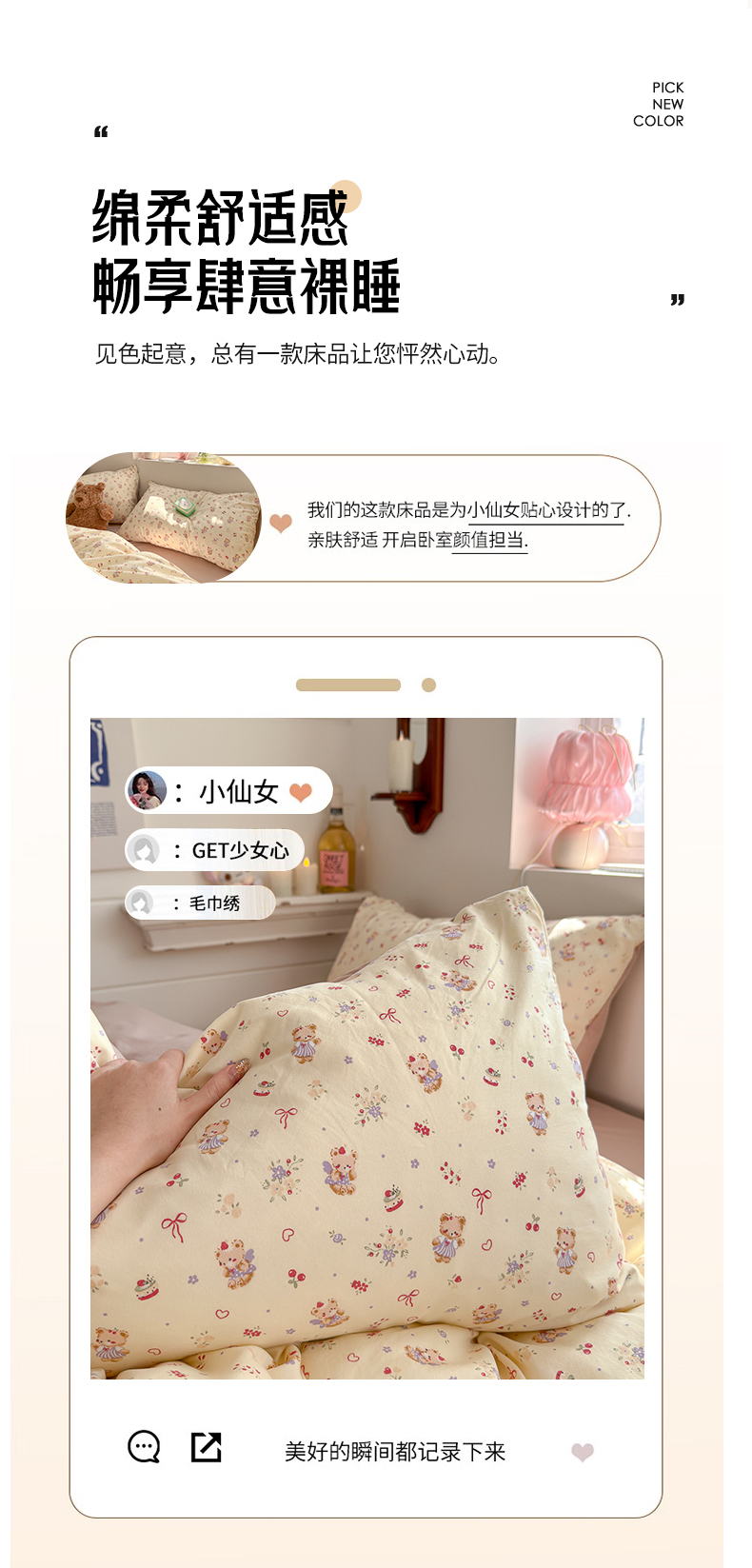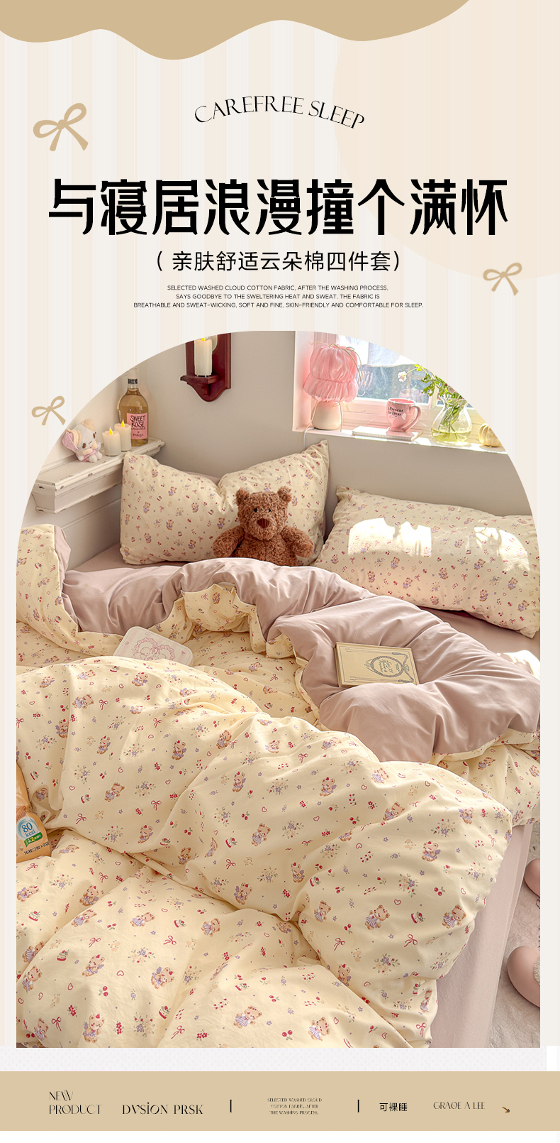 当前位置: 91家纺网 > 商品网购 > 床品套件 > 四件套 > 其它四件套 > 佳鸿家纺 2026新款【提供买家秀】110克高克重云朵棉四件套学生宿舍三件套床单款床笠款 眠花小屿