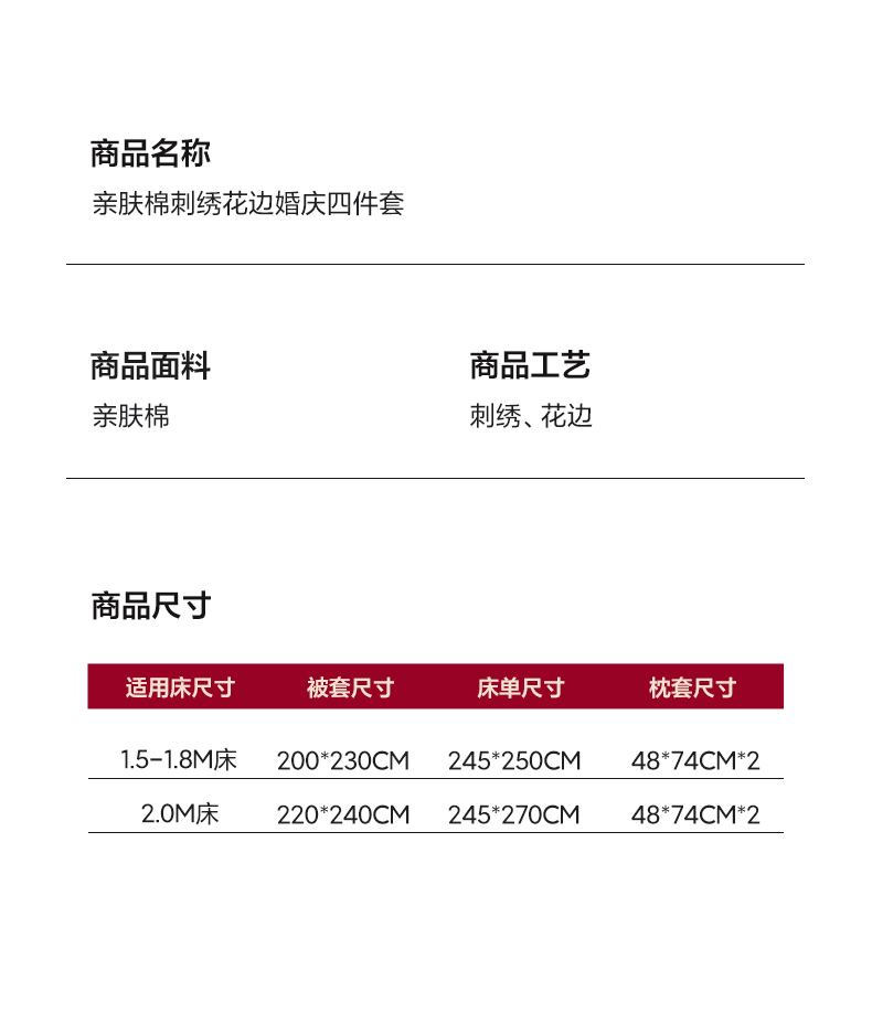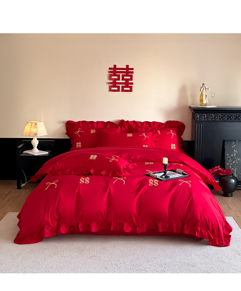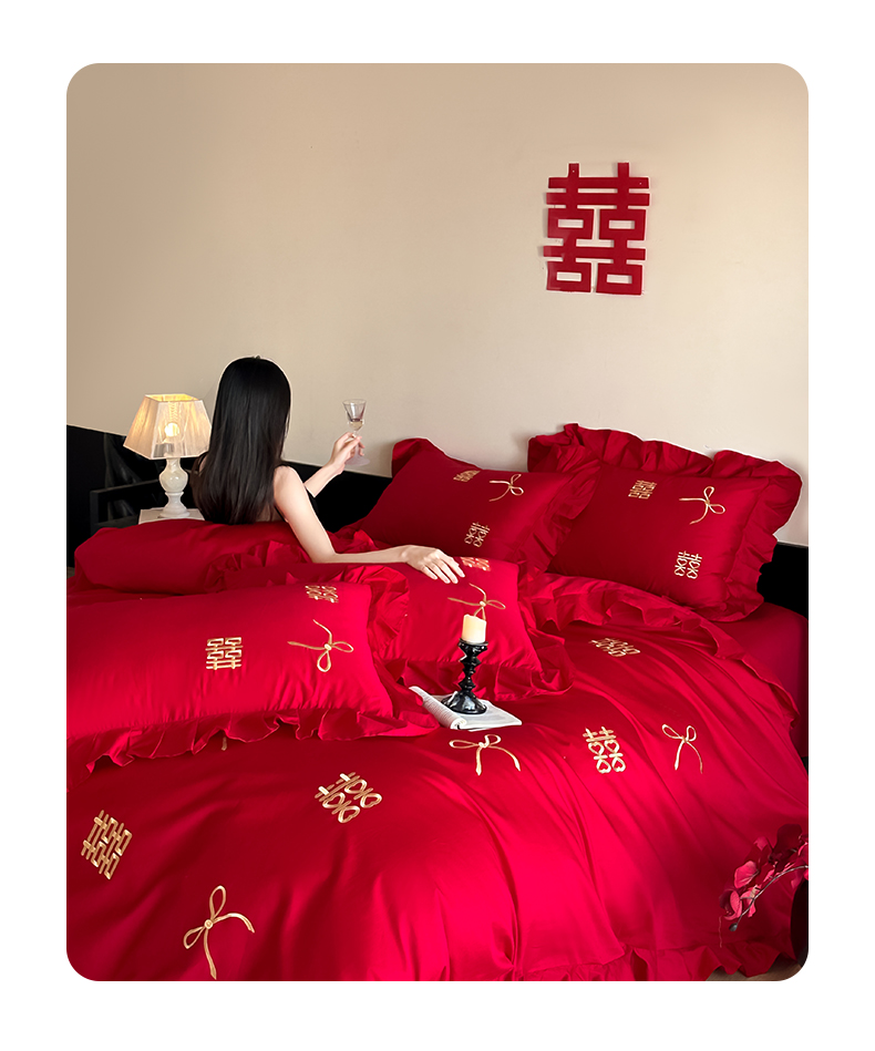 当前位置: 91家纺网 > 商品网购 > 床品套件 > 四件套 > 婚庆四件套 > (总)欧乐蒂 2025新款亲肤棉刺绣花边婚庆四件套-倾城