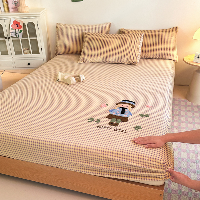 (总)喜梦缘 2025新款毛巾绣牛奶绒单被套 牛奶绒单床笠 牛奶绒四件套