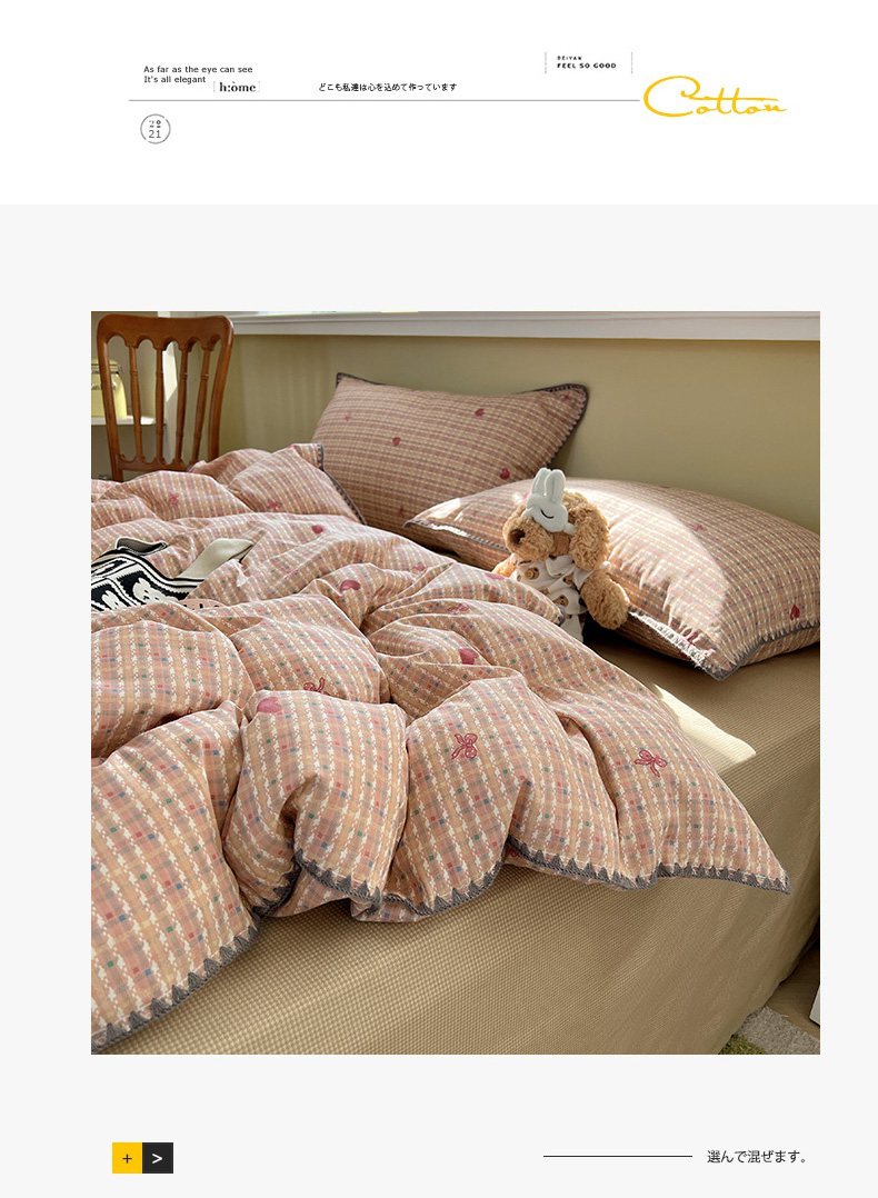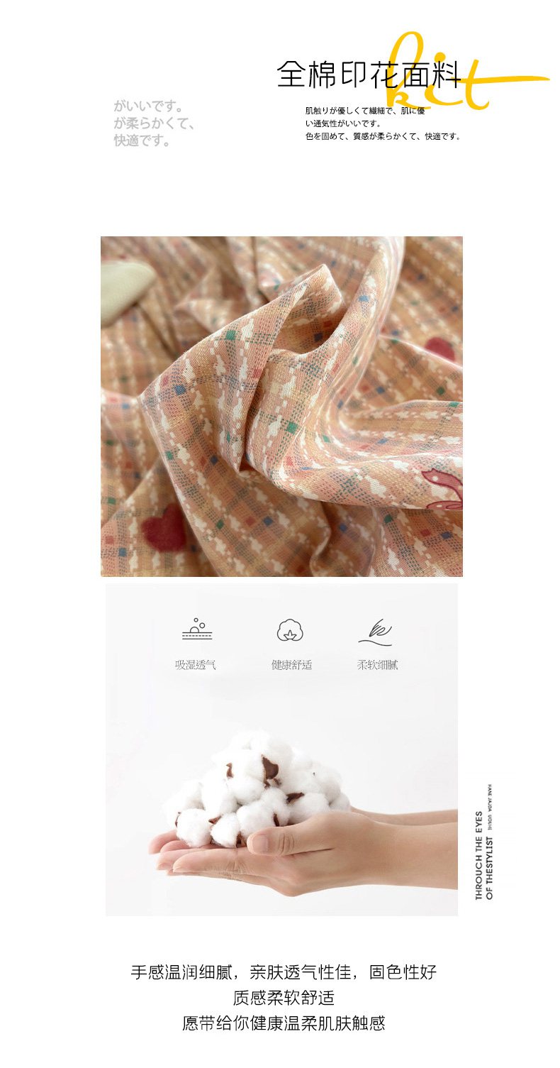(总)瑞莱 2026新款A类全棉纯棉有氧双层纱四件套,白熊小姐,彩色木马,淡彩花笺,费尔岛小熊,焦糖奶汪-桔,焦糖奶汪-绿,萌星,苹果星星人,小樱桃,樱桃画报