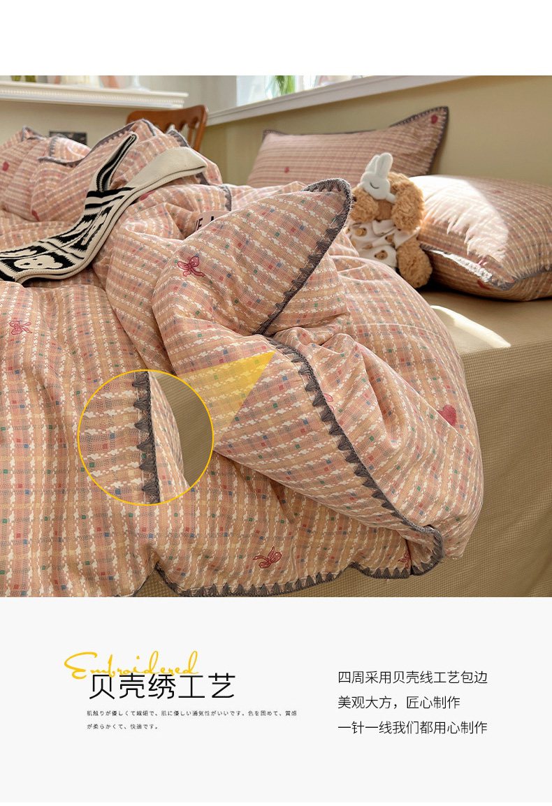 (总)瑞莱 2025新款全棉轻奢水洗棉贝壳绣四件套,豆沙,粉玉,米白,米黄,浅灰,浅蓝,深灰,深蓝,水绿,星蓝