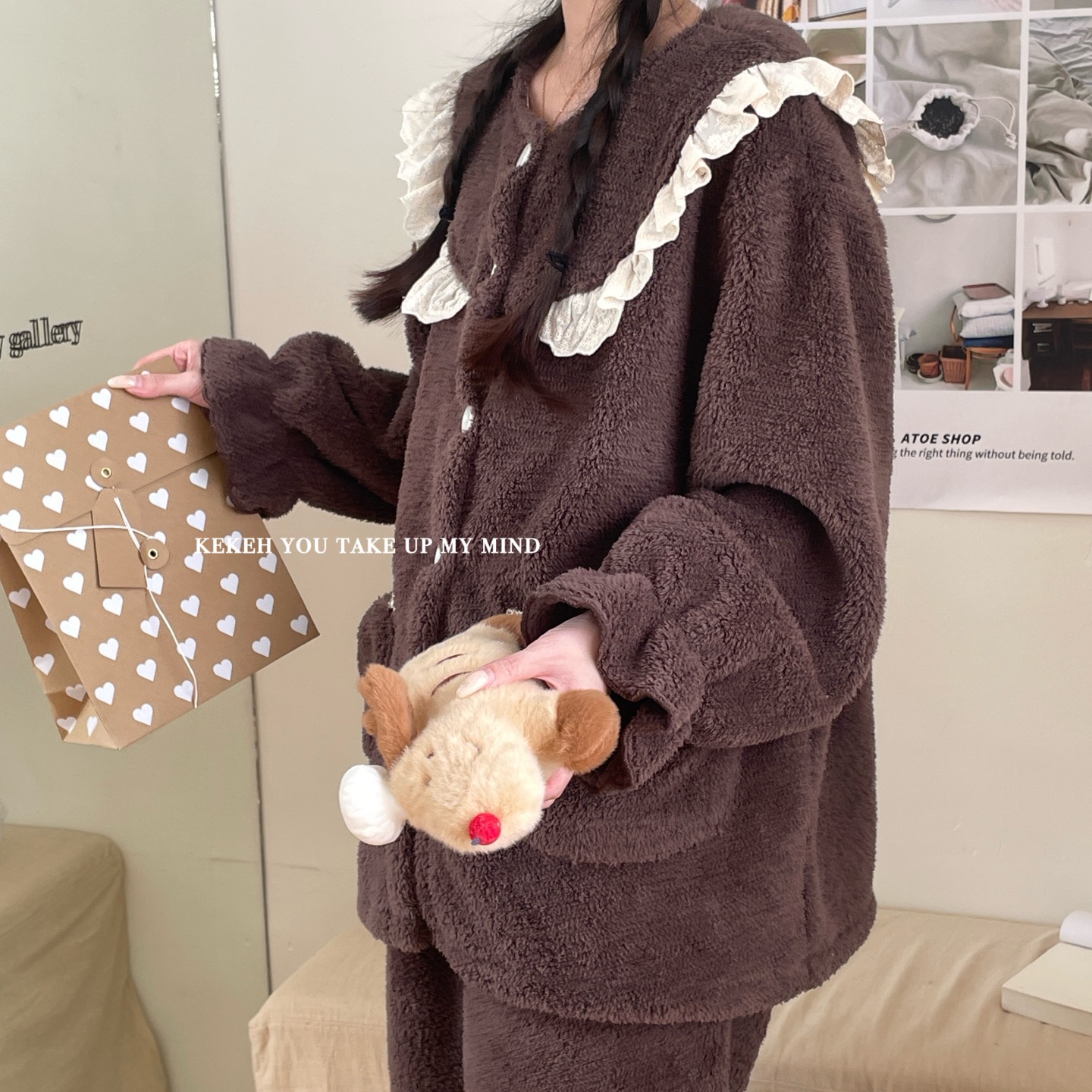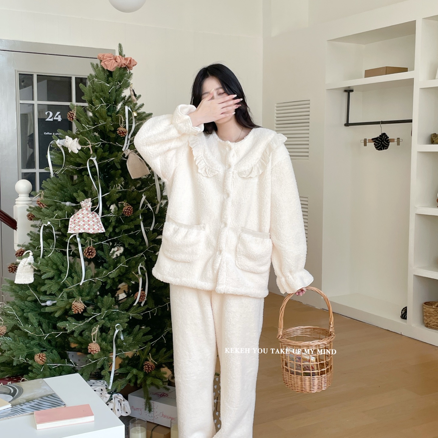 妍景家居生活馆 2025新款韩系圆领纽扣蕾丝套装 海涛兰