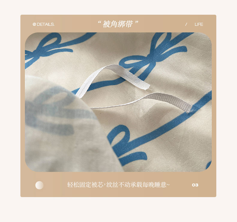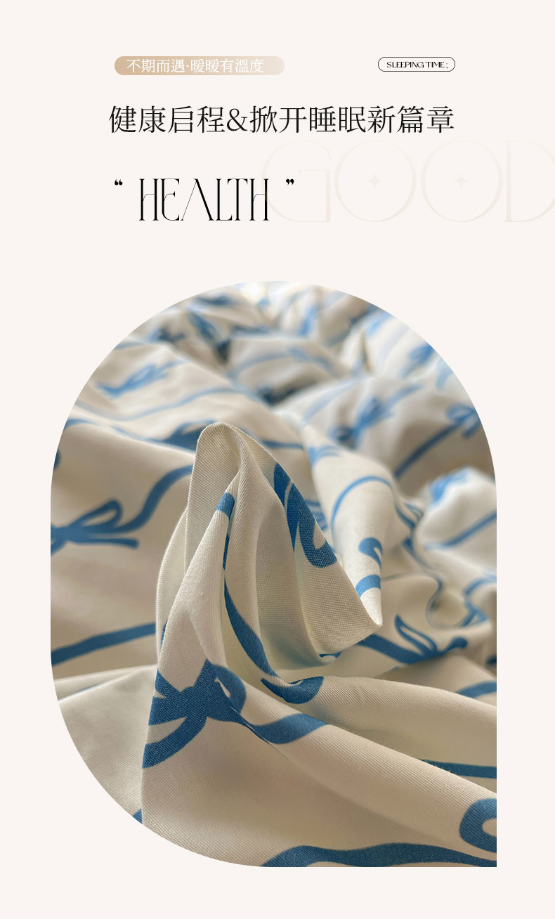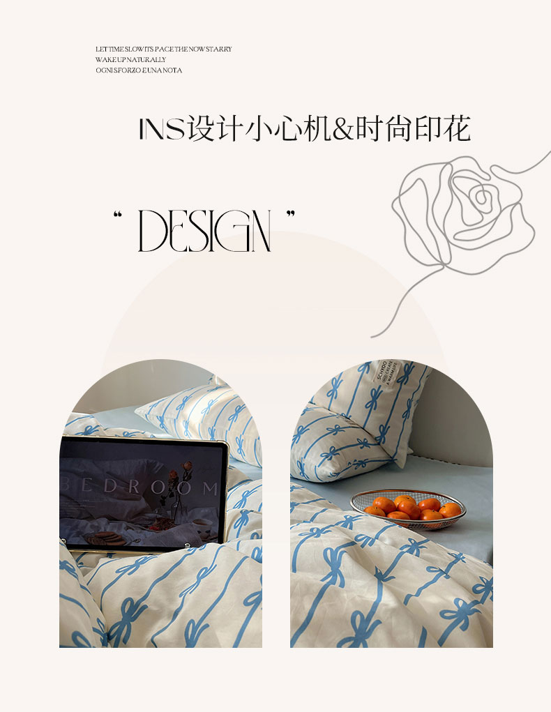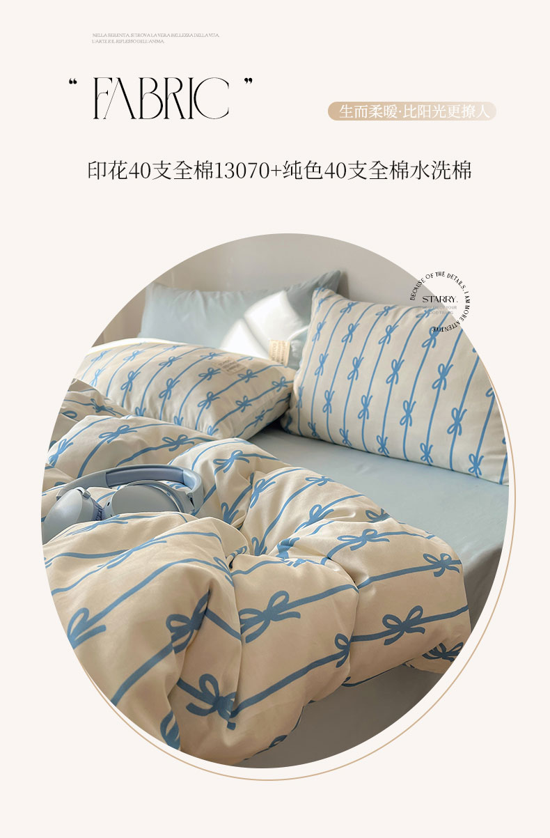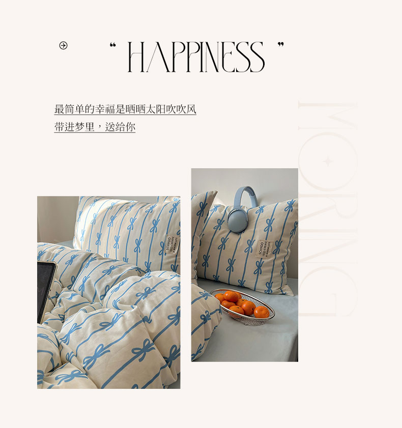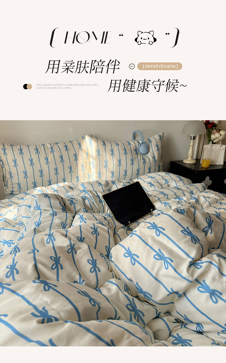 商品名称:六巷胡同 2026春夏新款INS博主风韩系蝴蝶结全棉四件套(自然光组) 丝带蝴蝶结-蓝