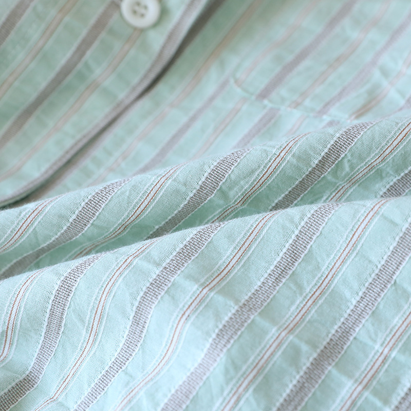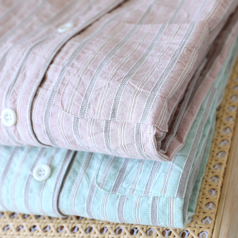 (总)洛兰沙家居馆 2025新款【松木】男士长袖长裤套装日系简约家居服全棉双层色织提花棉纱款,松木-灰色