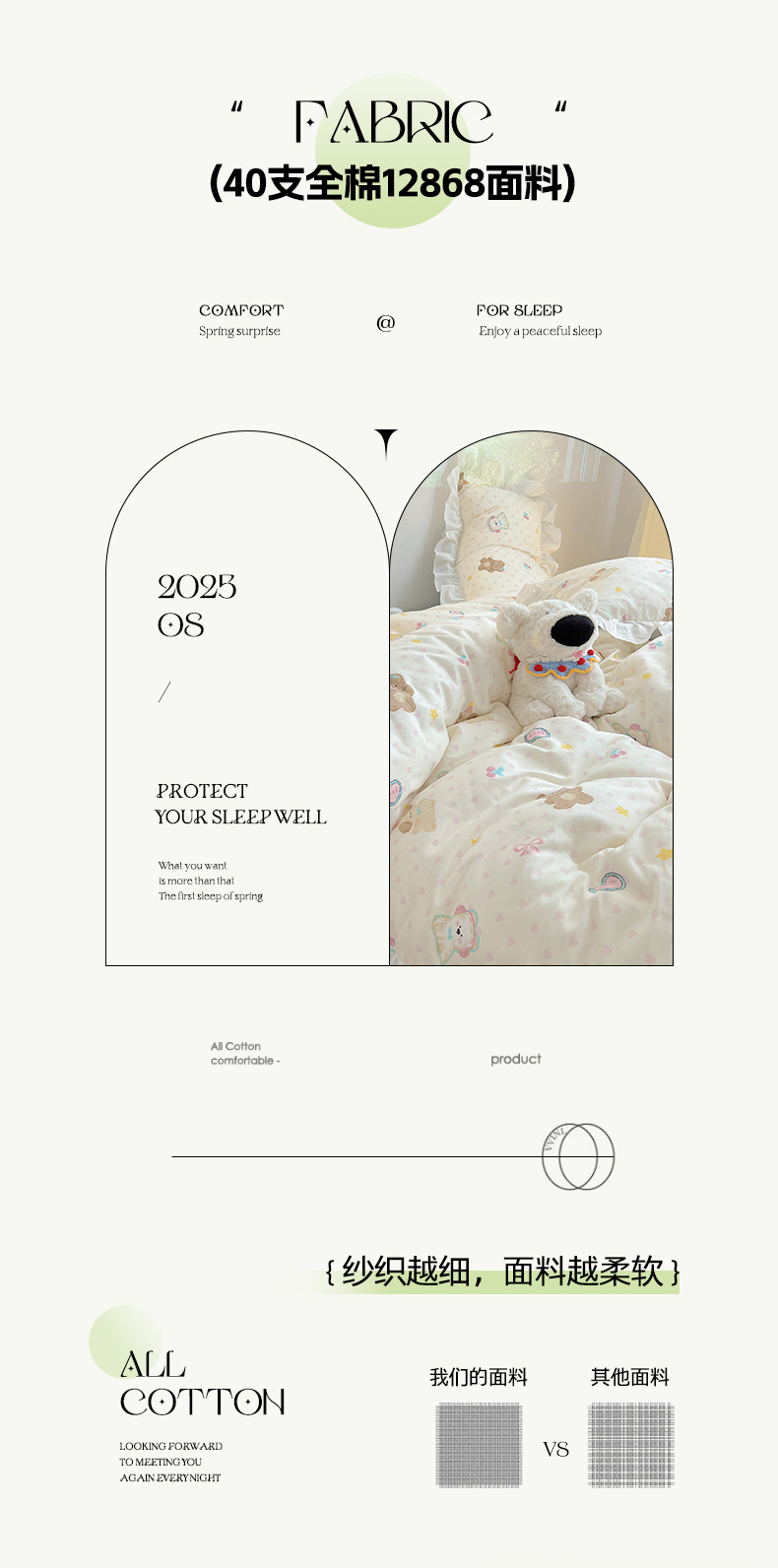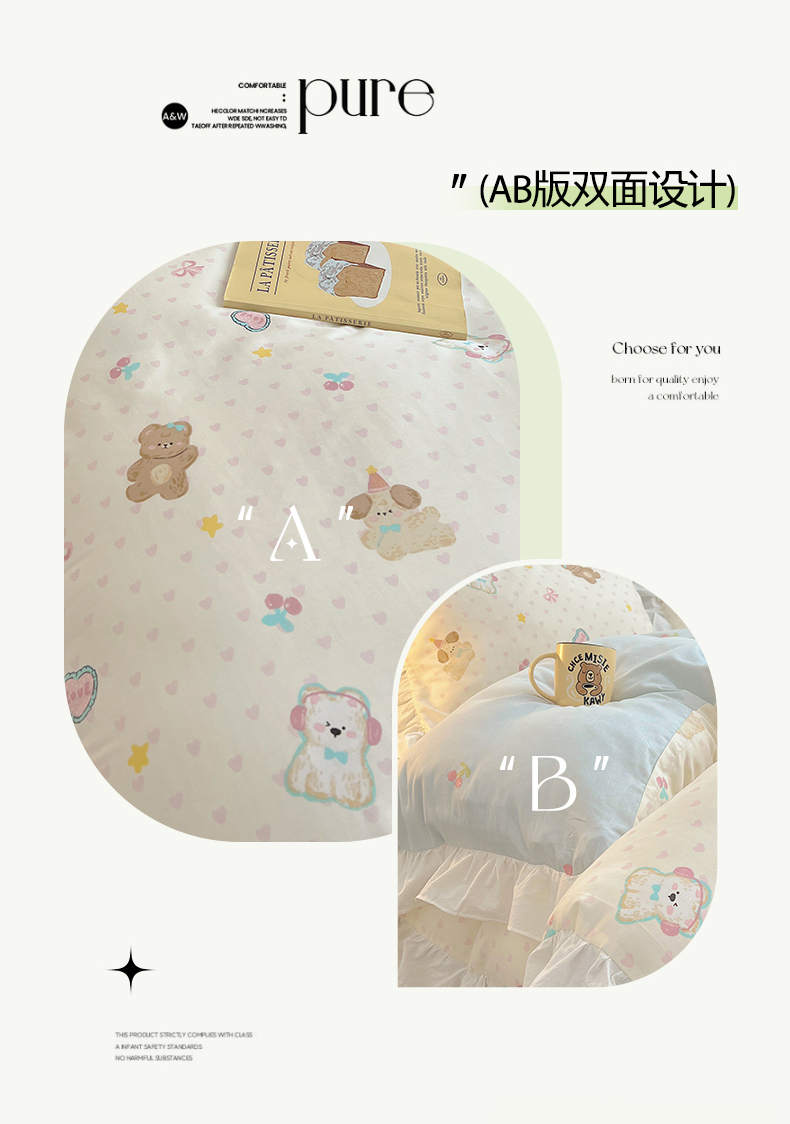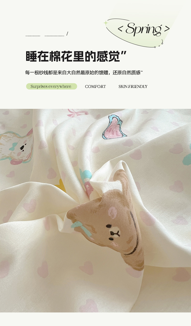 (总)六巷胡同 2025新款INS卡通童趣混搭风全棉四件套第二系,混搭-蛋糕围兜熊,混搭-奶油酣睡熊,混搭-奈斯羞羞狗,混搭-小蓝格甜点,混搭-雪糕哈皮熊,混搭-月亮睡睡熊