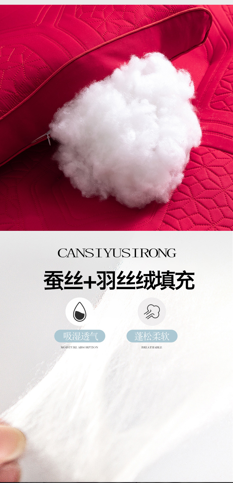 当前位置: 91家纺网 > 商品网购 > 枕头/枕芯/保健枕/颈椎枕 > 枕头枕芯 > 仁宇枕业 2025新款新品大红婚庆莱赛尔蚕丝乳胶功能枕头枕芯大豆乳胶枕头枕芯 蚕丝乳胶婚庆枕-大红色磨毛款