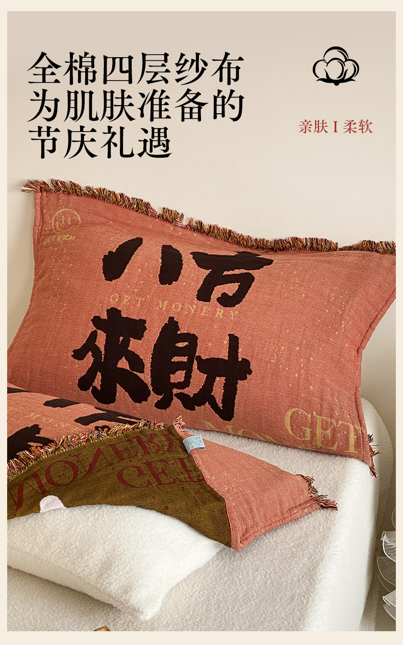 (总)麻依 2025新款婚庆全棉流苏款四层纱布枕巾,发财暴富52*75,福禄52*75,福娃52*75,好运52*75,锦鲤52*75,平安喜乐52*75,新年快乐52*75