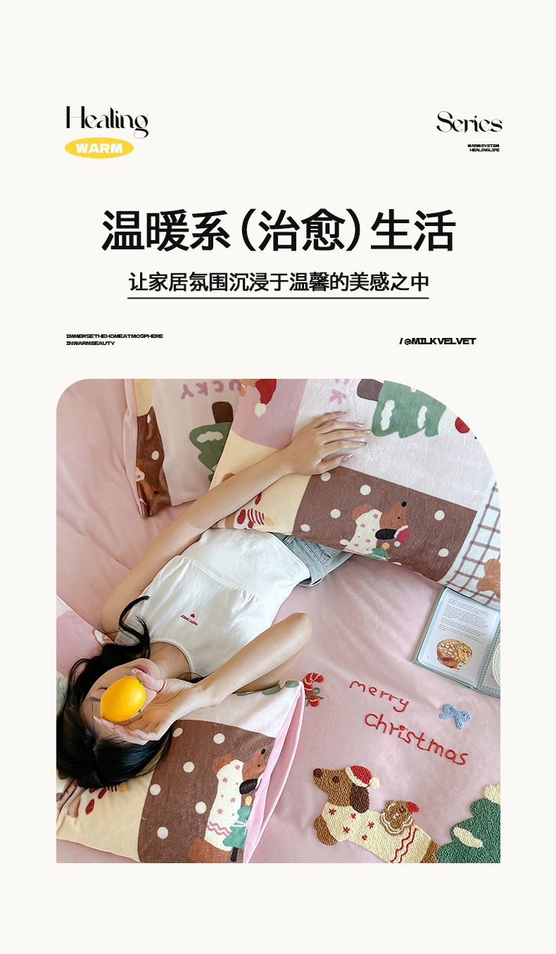 当前位置: 91家纺网 > 商品网购 > 床品套件 > 四件套 > 牛奶绒四件套 > 桃子家居 2025新款A类毛巾绣立体数码印花可爱卡通圣诞印加绣加厚牛奶绒系列四件套 绒印加绣-粉粉腊肠小狗