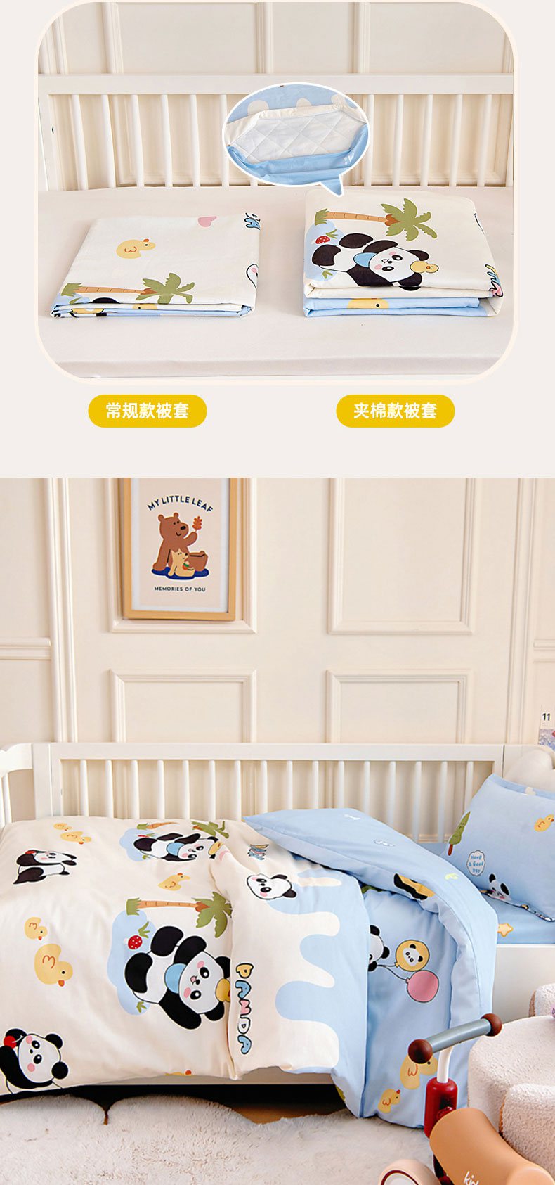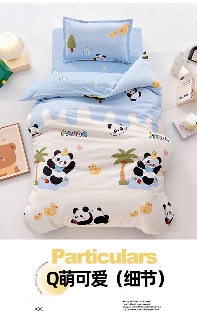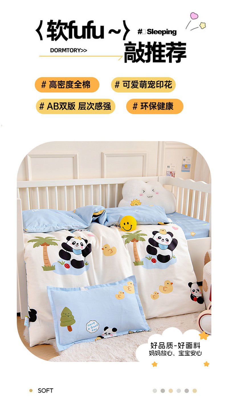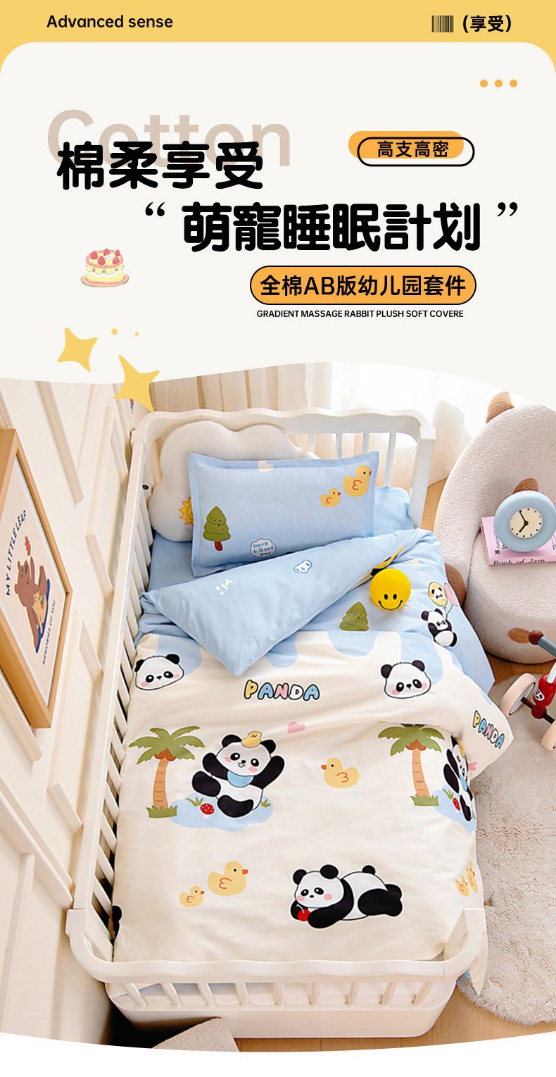 当前位置: 91家纺网 > 商品网购 > 床品套件 > 四件套 > 其它四件套 > 芭伯妮 2026新款全棉AB版幼儿园三件套宝宝午睡被子六件套儿童被套多件套(第一批) 熊猫鸭鸭乐-蓝