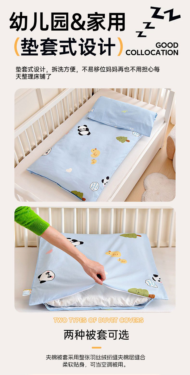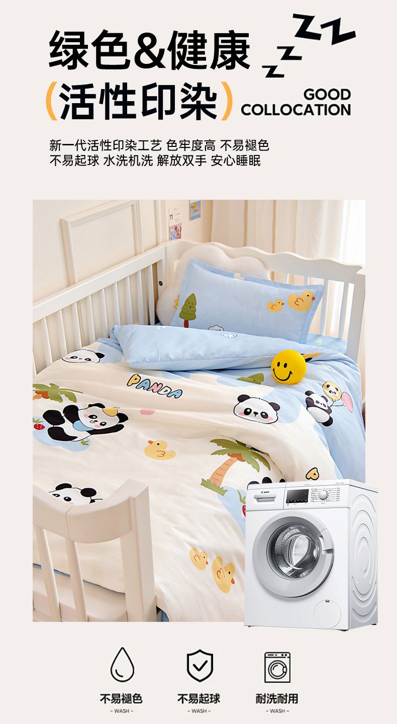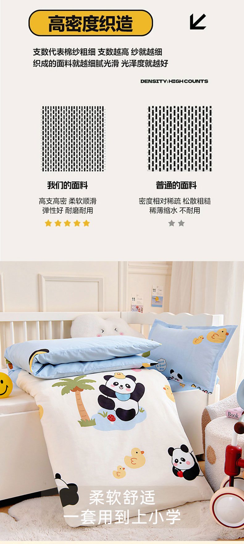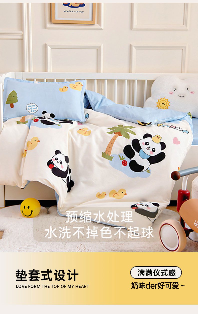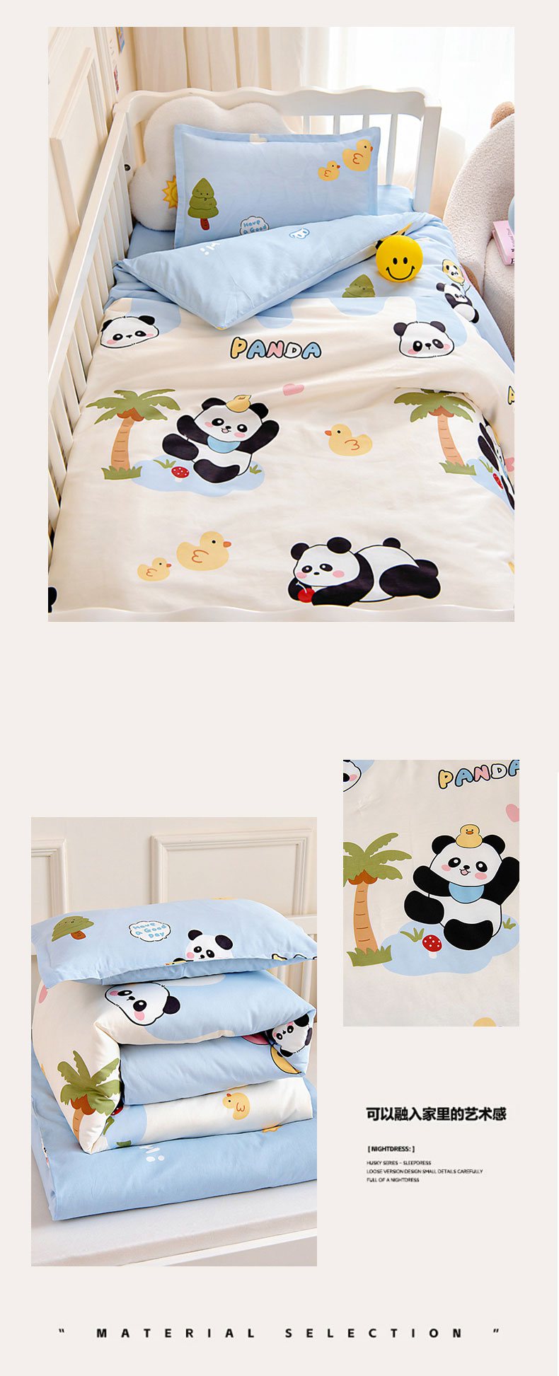当前位置: 91家纺网 > 商品网购 > 床品套件 > 四件套 > 其它四件套 > 芭伯妮 2026新款全棉AB版幼儿园三件套宝宝午睡被子六件套儿童被套多件套(第一批) 熊猫鸭鸭乐-蓝