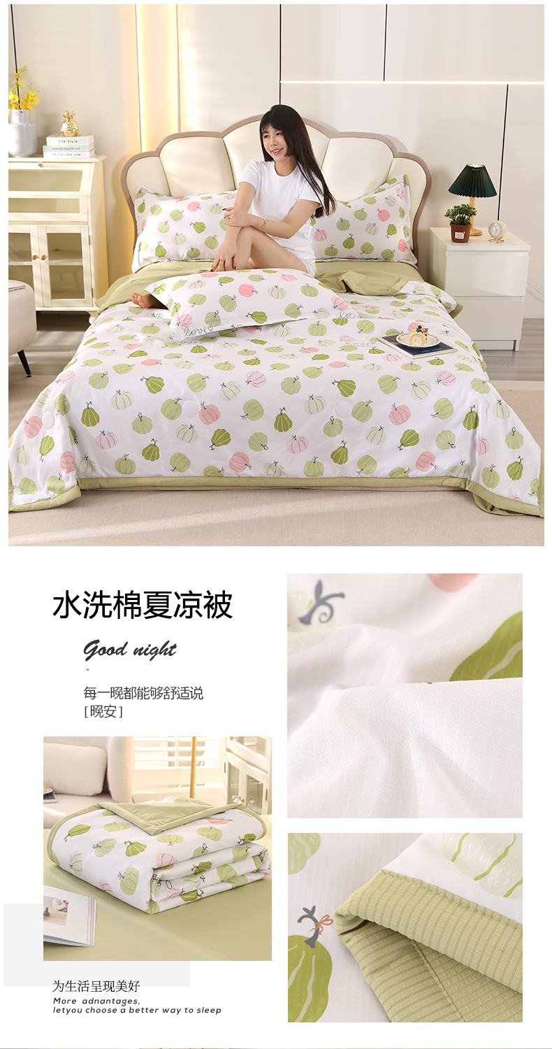 商品名称:延遥 2026新款亲肤水洗棉夏被夏凉被夏被四件套 小南瓜