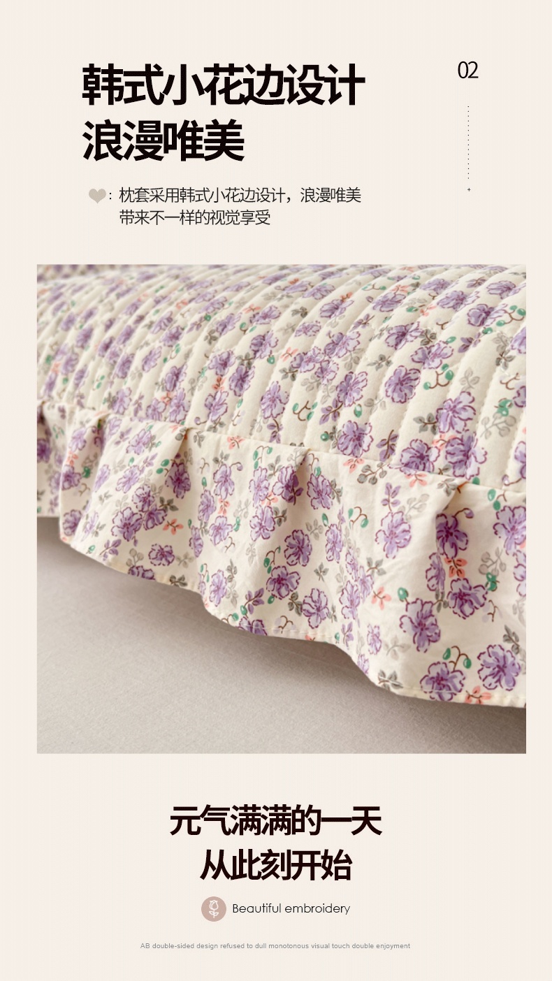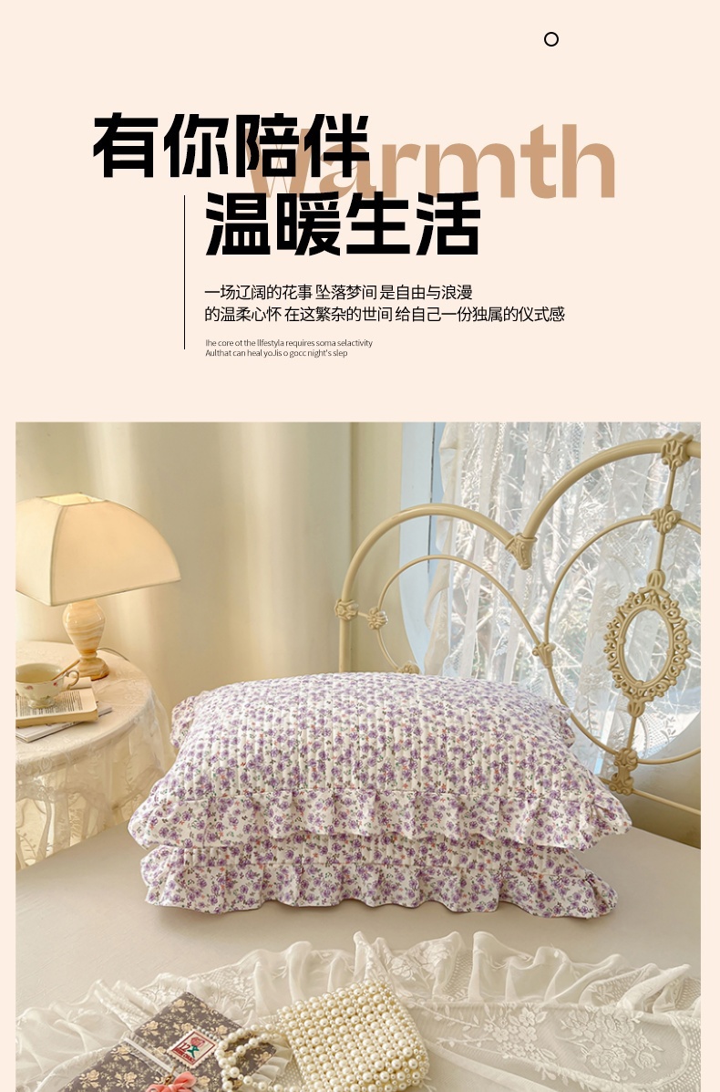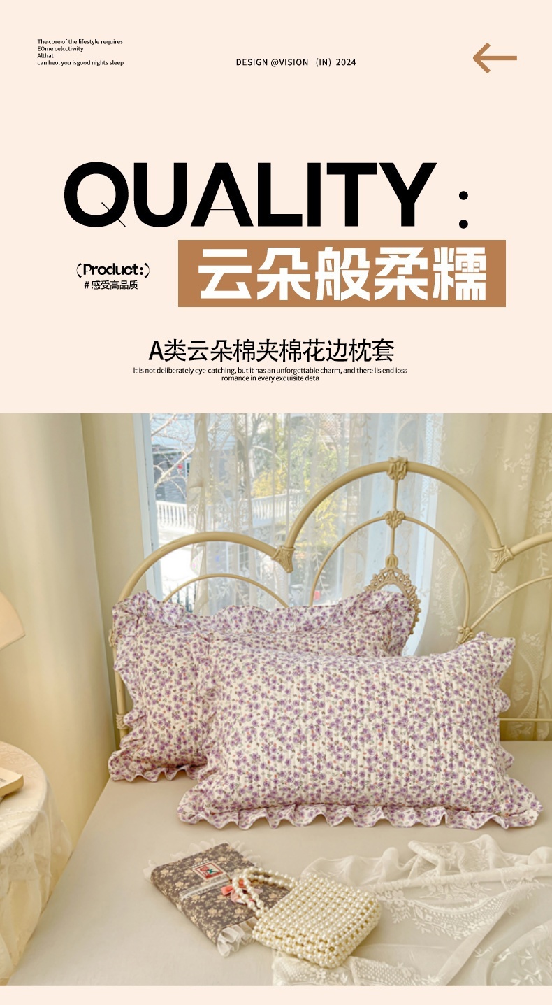 • 91家纺网 家纺一手货源 找家纺 梦舒羽 2026新款A类云朵棉夹棉花边枕套宿舍单人一只装枕芯内胆套-单人枕套 紫韵星野(花边夹棉)
