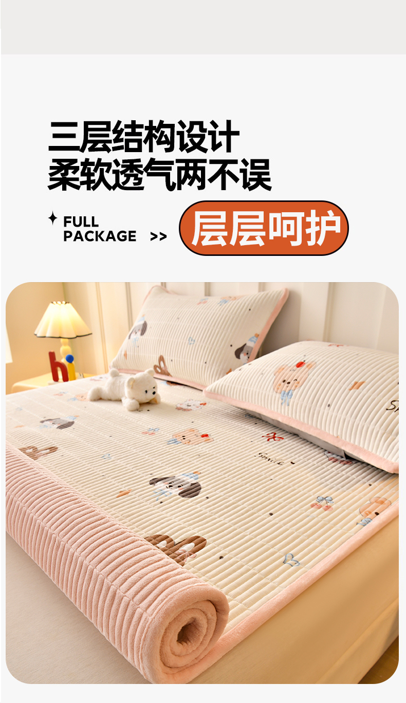 (总)悠米悠家 2025新款A类羊羔绒夹棉大豆床笠床垫,白色,粉色,灰色,橘色,咖色