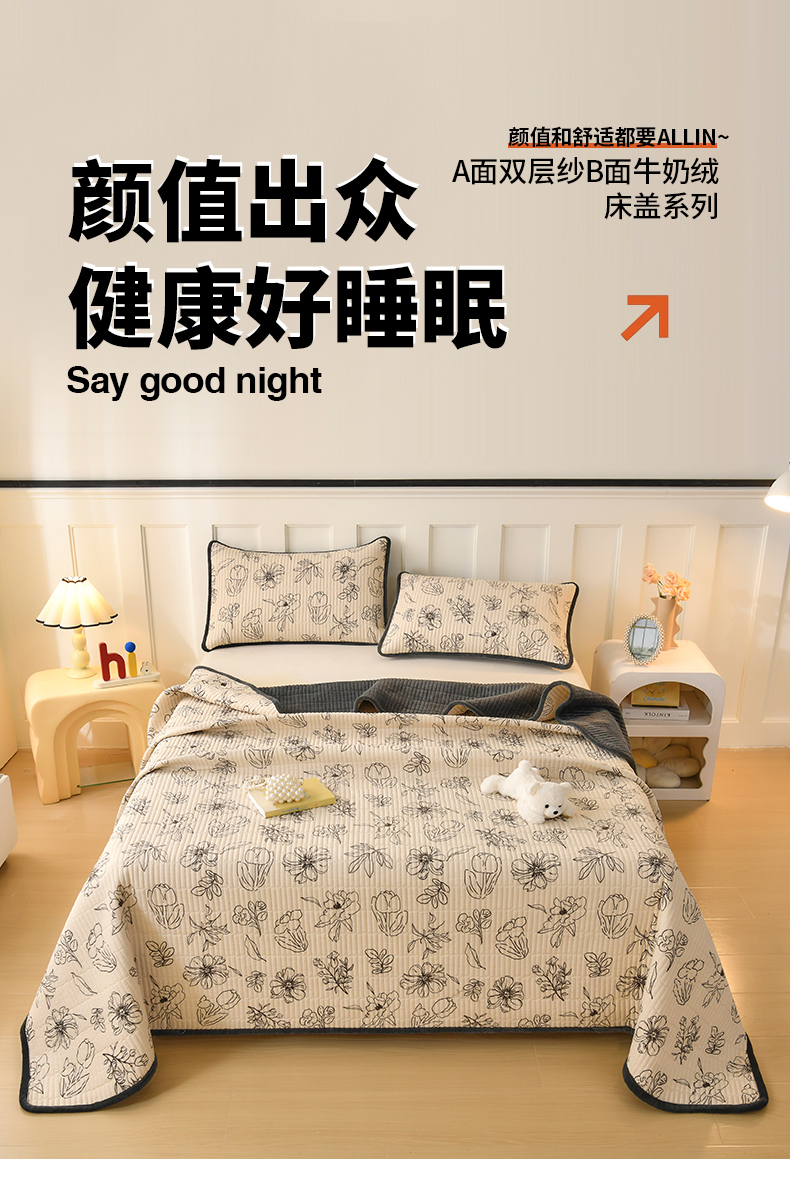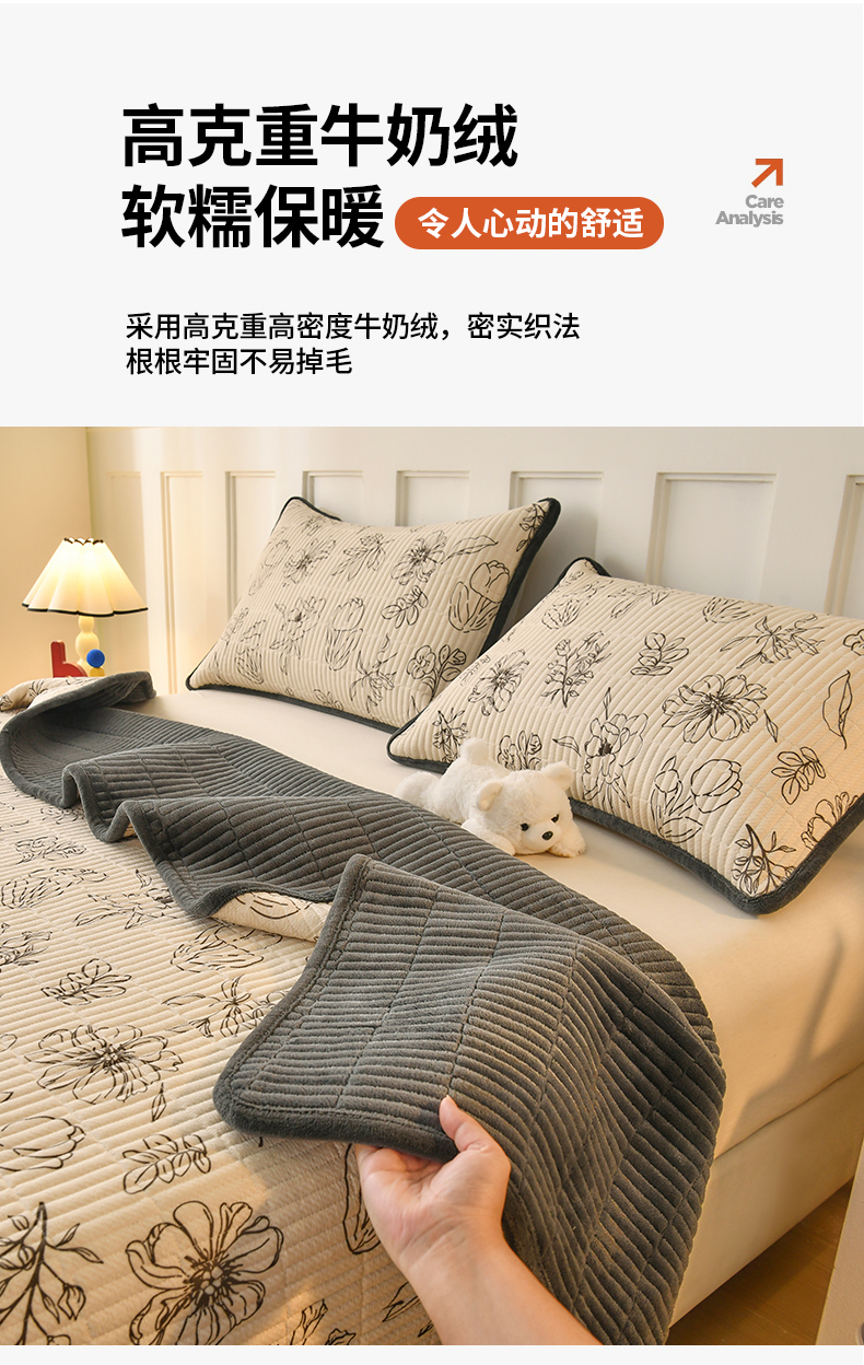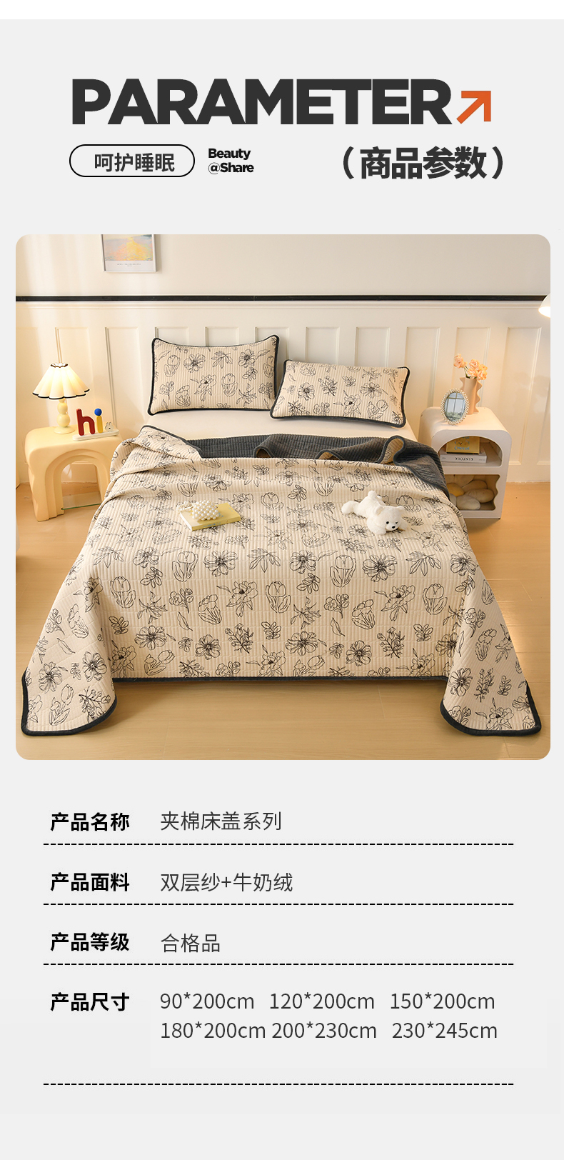 • 91家纺网 家纺一手货源 找家纺 悠米悠家 2026新款卡通棉拼绒夹棉床盖单品床盖床盖单件 墨色花卉